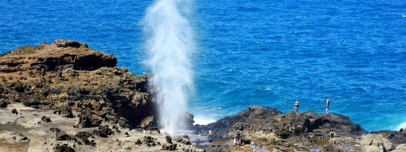 One of Maui’s natural wonders, the Nakalele Blowhole, provides an exhilarating display of ocean power! Located on the island’s rugged northwestern shore, this blowhole is the result of sea water trapped in an underwater lava tube, which is then forcefully expelled through a hole in the rock, creating a spectacular geyser-like effect.