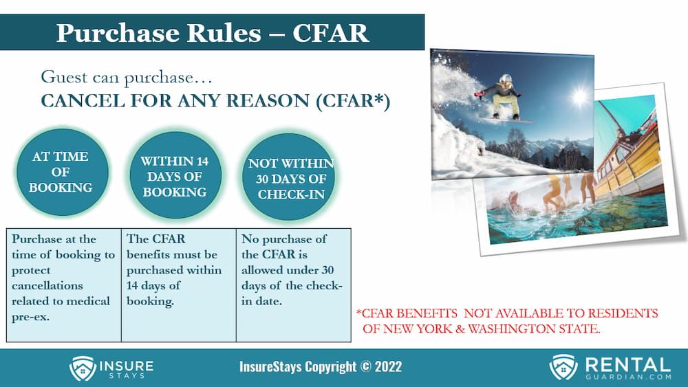 Guests opting not to purchase travel insurance should be aware that per the terms and conditions in your rental agreement, refund-in-full of your reservation deposit(s) will not be available; therefore, your entire booking payment could be at risk.