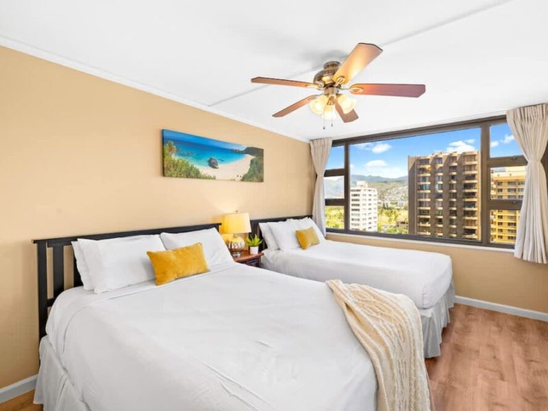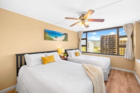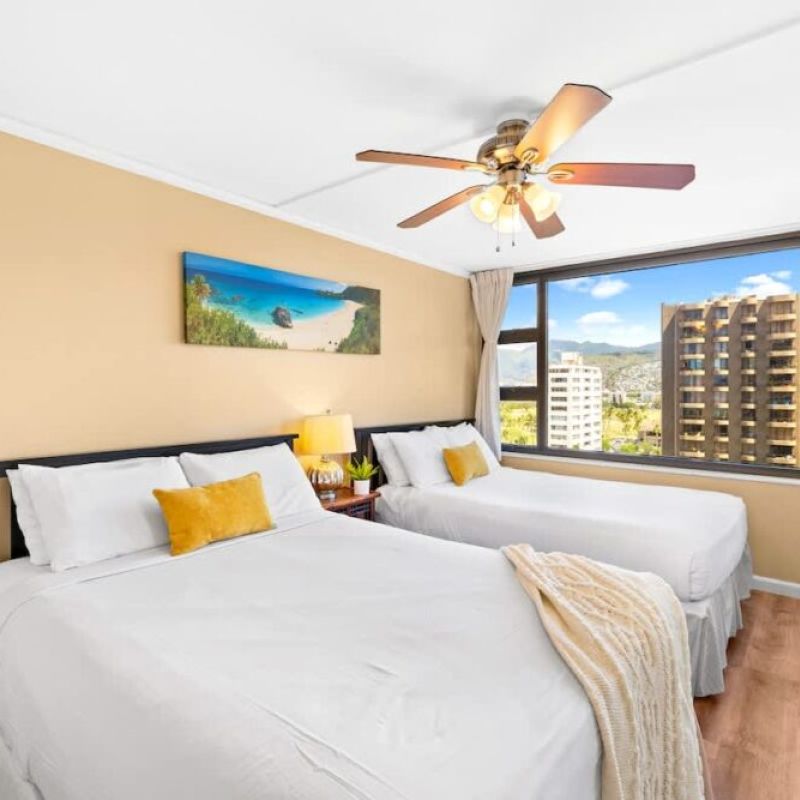 Relax in this newly renovated 1-bedroom condo at Waikiki Banyan, hosted by Midway Vacations. Perfect for up to 4 guests, it’s just a short walk to Waikiki Beach, great dining, and shopping. Enjoy mountain and city views from the bedroom and private lanai, plus free high-speed WiFi and parking for a hassle-free stay!