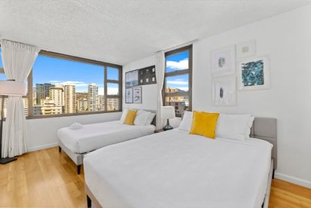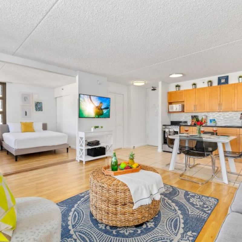 Experience island comfort in this 17th-floor 1-bedroom condo at Waikiki Banyan, perfect for couples, families, or business travelers. Just a short walk to Waikiki Beach, shops, and restaurants. Enjoy partial ocean and city views, a full kitchen, and modern amenities for a relaxing stay!