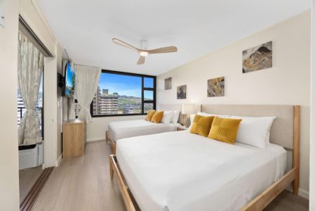 Experience the perfect Waikiki getaway in this 1-bedroom condo on the 12th floor of Waikiki Banyan, managed by Midway Vacations. Ideal for up to 4 guests, this condo offers stunning mountain views and is just a short stroll from Waikiki Beach, shopping, and dining. Enjoy the convenience of free parking included with your stay. Book now to make your Waikiki vacation unforgettable!