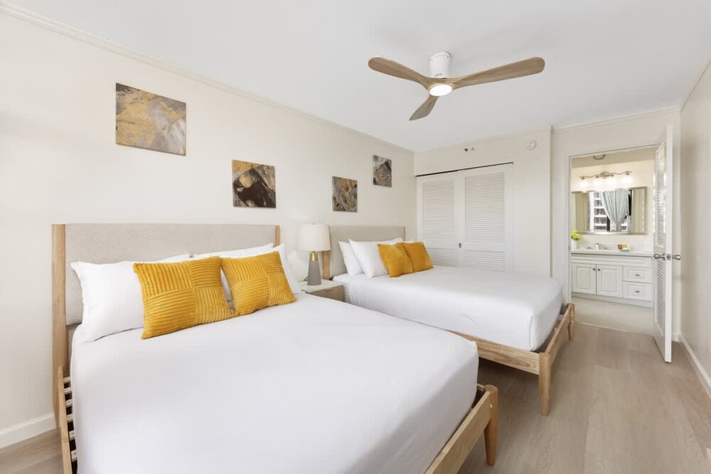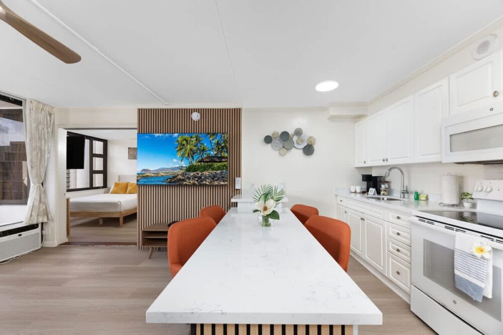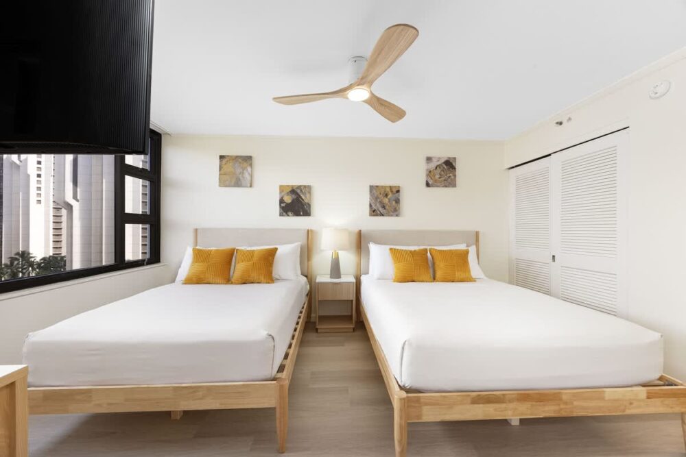 We stayed here with my husband and our children. It was an easy walk to Waikīkī beach and restaurants. Good area, the banyan breeze coffee downstairs has amazing coffee and breakfast sandwiches. There is also a minimart that is open later until 10pm…