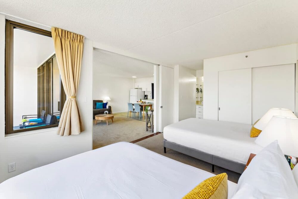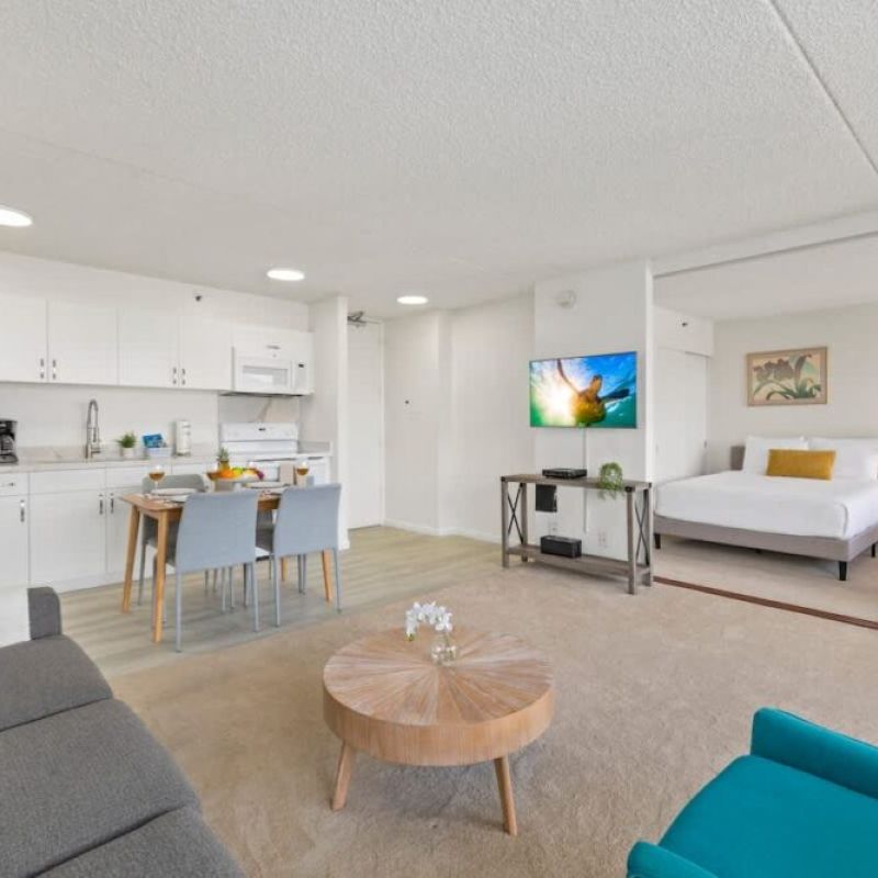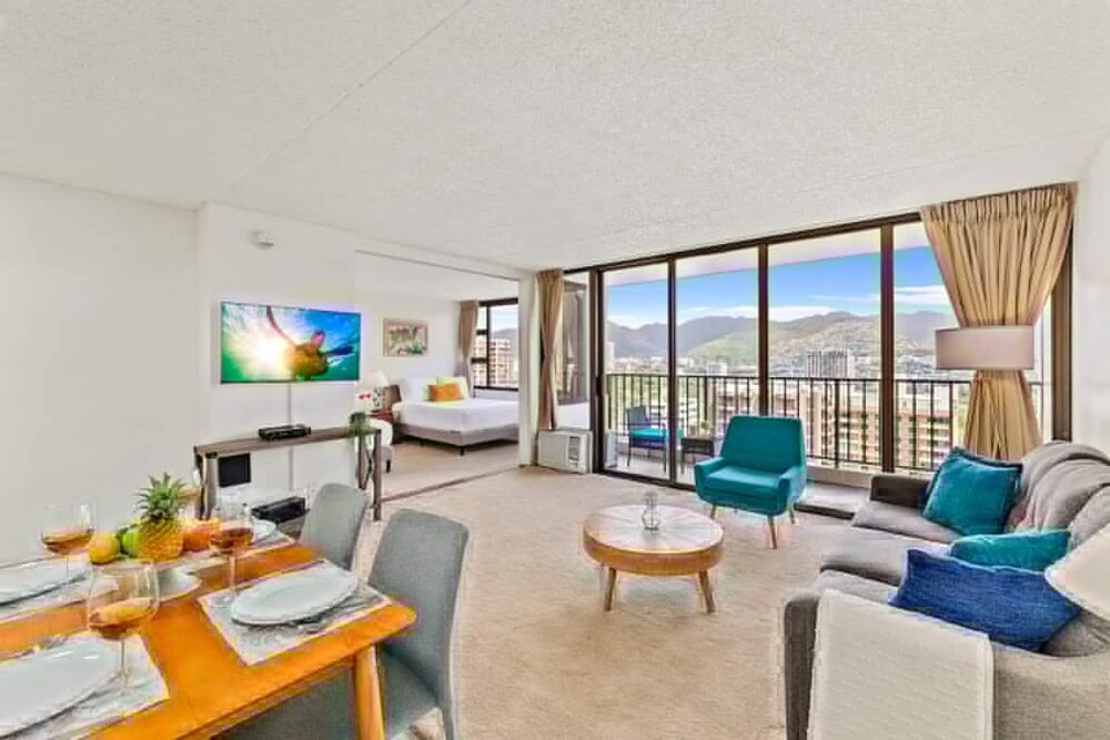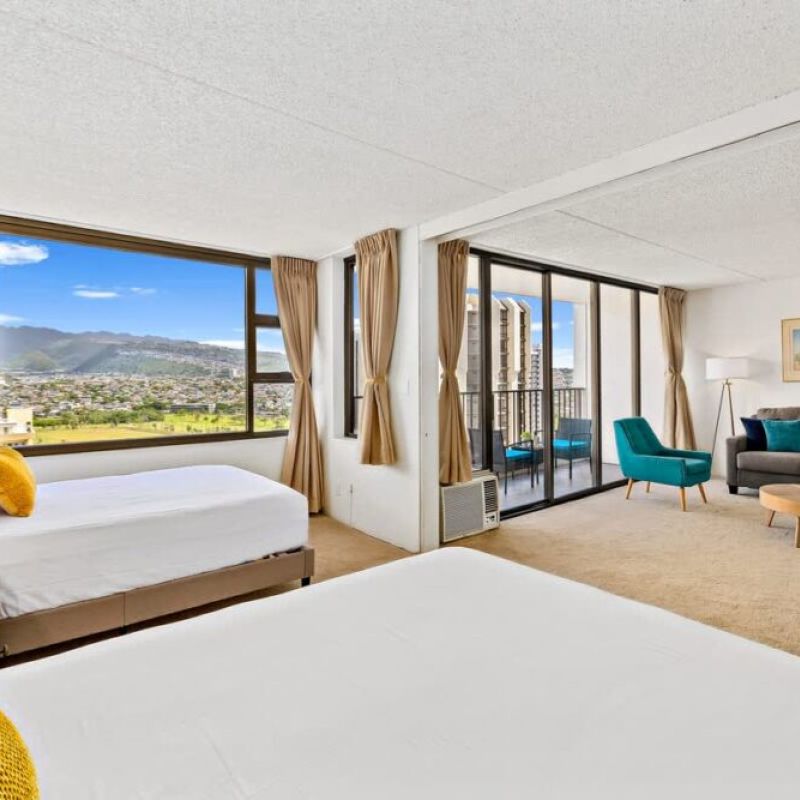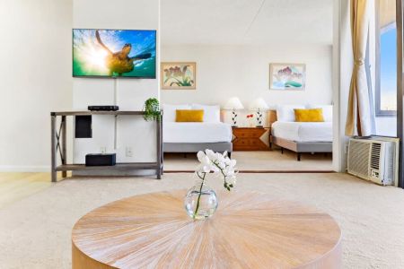 Check out this newly renovated 1-bedroom condo with free parking at Waikiki Banyan, brought to you by Midway Vacations! It accommodates up to 4 guests and is just a stroll away from the iconic Waikiki Beach, fantastic shopping spots, and amazing restaurants. Enjoy complimentary high-speed wireless internet. Plus, soak in the gorgeous mountain and city views from both the bedroom and the living room!