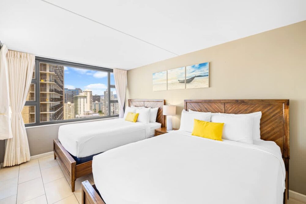 Experience beautiful ocean and city views from this bright 1-bedroom condo on the 22nd floor of the Waikiki Banyan. Just one block from Waikiki Beach, shops, cafés, and top attractions, this comfy retreat sleeps 4 and offers a perfect blend of convenience and relaxation for your island stay!