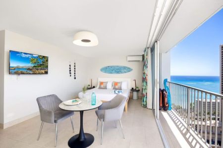 Enjoy breathtaking ocean and city views from this cozy studio on the 29th floor of the Pacific Monarch Hotel. Relax at the rooftop pool area overlooking Waikiki or stroll just minutes to the beach, Duke’s Statue, shops, and restaurants. This prime location offers the perfect blend of comfort and convenience for your island escape!