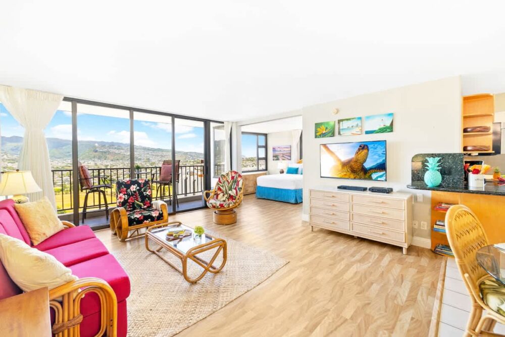 Experience a bright and welcoming 1-bedroom condo on the 29th floor of the Waikiki Banyan, featuring stunning mountain views and comfortable space for up to 4 guests. Just a short walk to Waikiki Beach, shopping, and great dining. Enjoy free parking, fast Wi-Fi, and all the essentials for a relaxing, convenient stay in paradise.