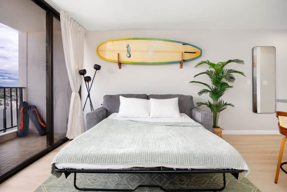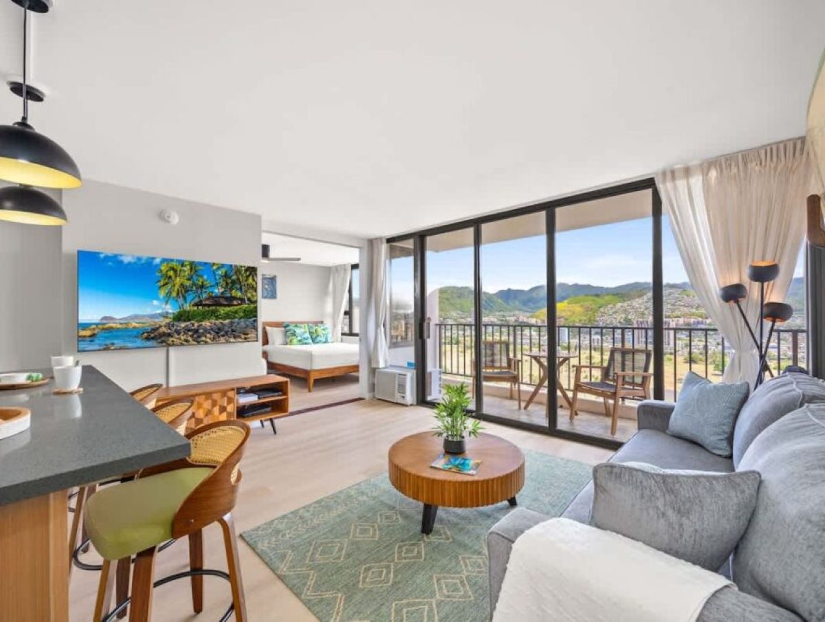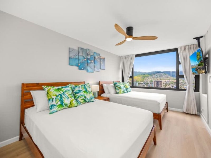 Welcome to this beautifully renovated 1-bedroom unit, proudly managed by Midway Vacations. Perfect for couples, solo travelers, business professionals, or families with kids, this space accommodates up to 4 guests. Located in the Waikiki Banyan, it’s just a short walk from world-famous Waikiki Beach, top shopping spots, and a variety of dining options. Enjoy complimentary parking during your stay and take in the breathtaking mountain and city views from both the bedroom and the balcony!
