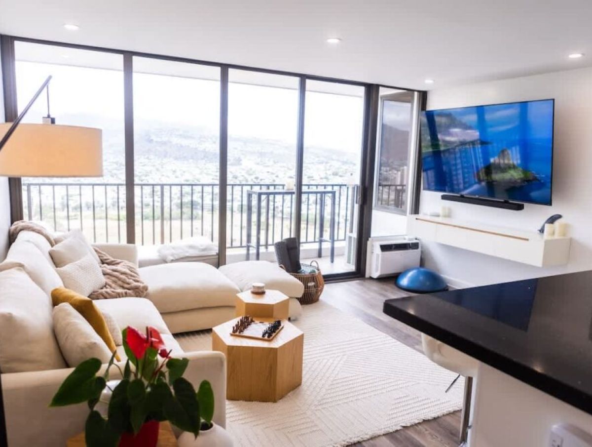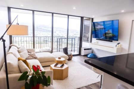 Escape to this cozy 1BR on the 37th floor of Waikiki Banyan, perfect for 2 guests! This stylish condo features a plush king bed, A/C, full kitchen, full bath w/ walk-in shower, and a living area with a sectional sofa and Smart TV. Enjoy coffee or sunsets from your private balcony with mountain views. With free parking & Wi-Fi, just a short walk to Waikiki Beach, Honolulu Zoo, Kapiolani Park, cafés, and shops.