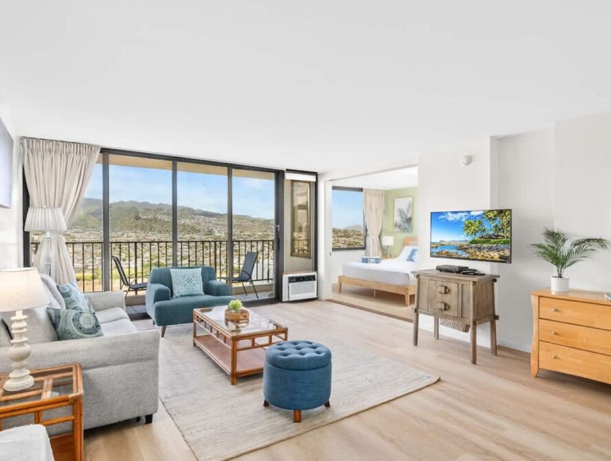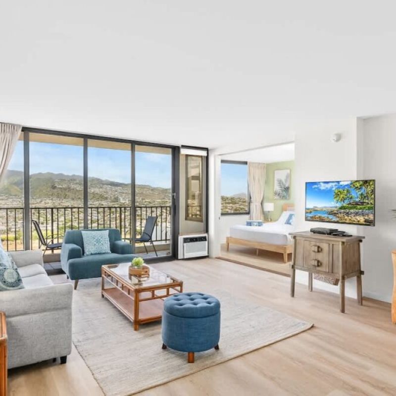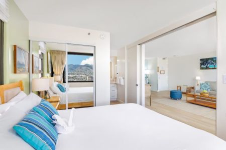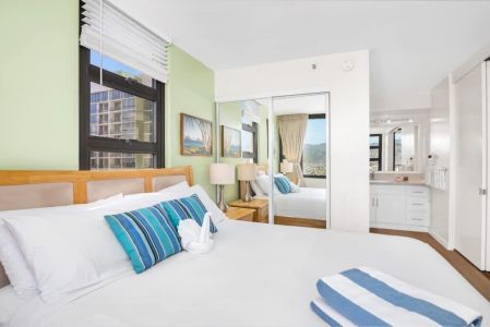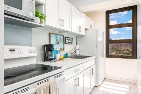 Charming 1-bedroom condo, accommodating up to 4 guests, situated within the Condominium Hotel Waikiki Banyan brought to you by Midway Vacations. Ideally located within walking distance of the renowned Waikiki Beach, as well as shopping and dining destinations. Enjoy the convenience of complimentary high-speed wireless internet and parking. Enjoy beautiful mountain and city views from the bedroom and balcony!