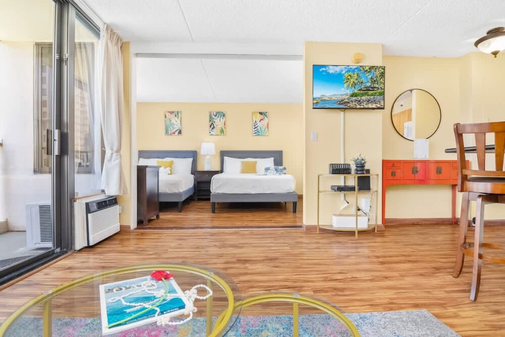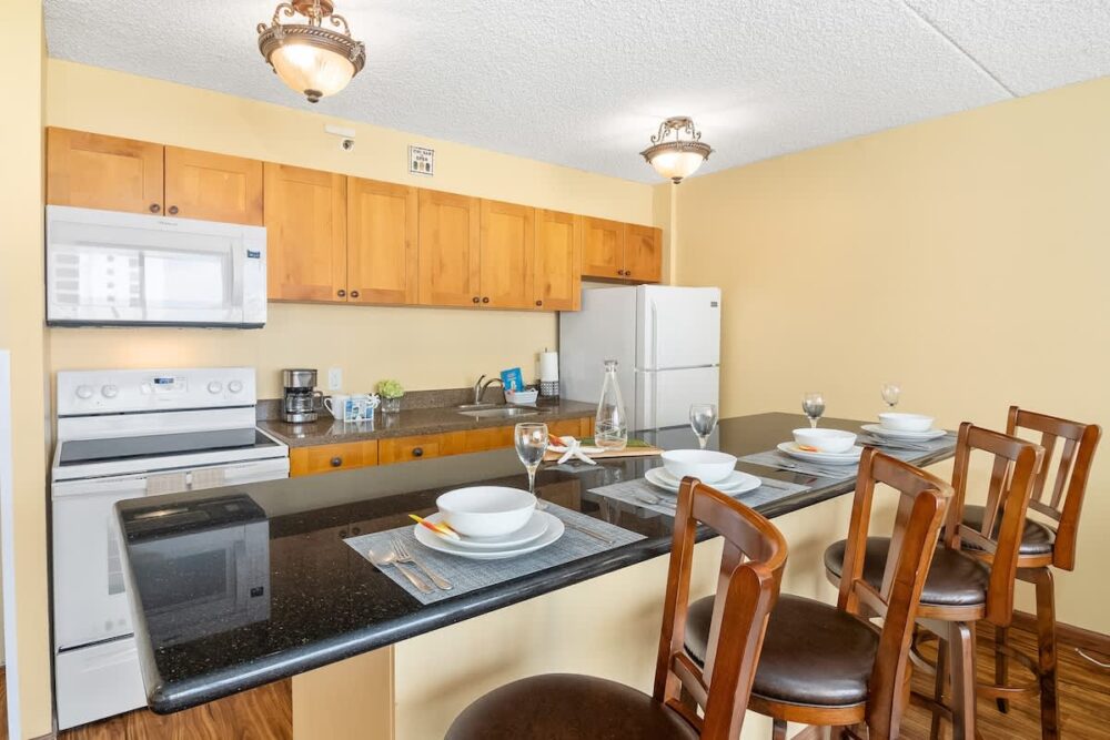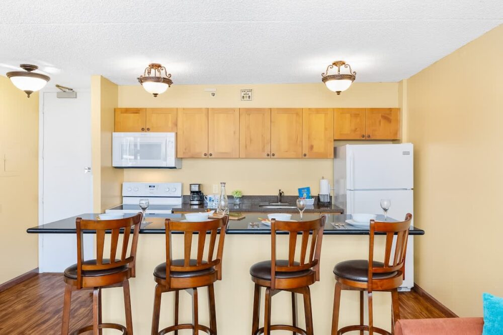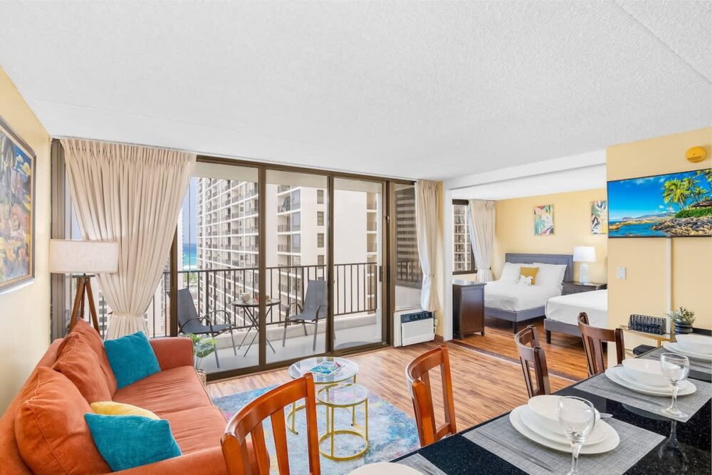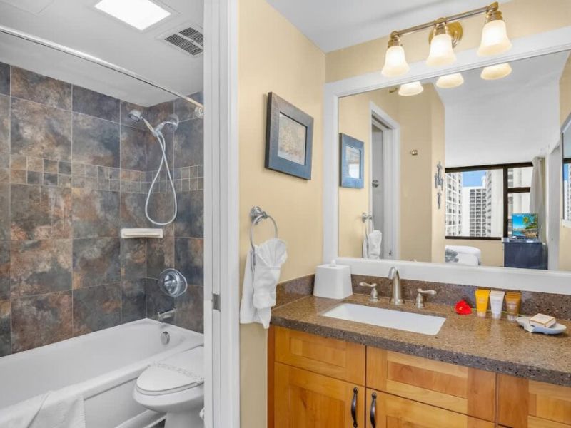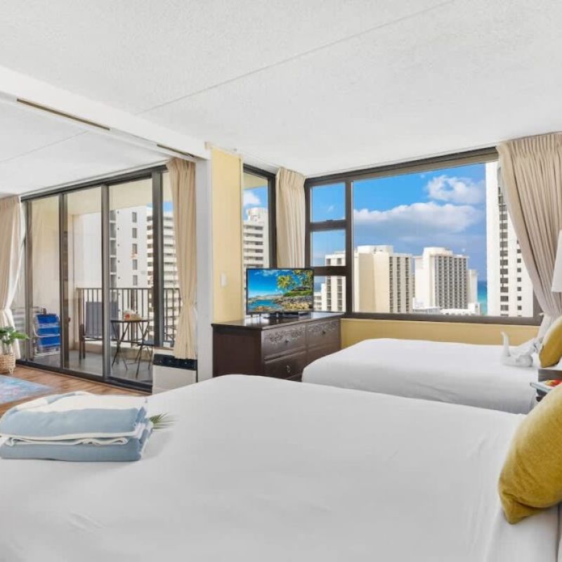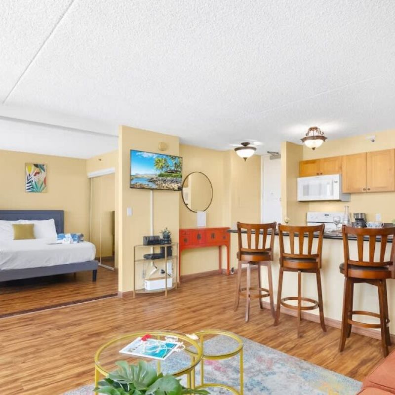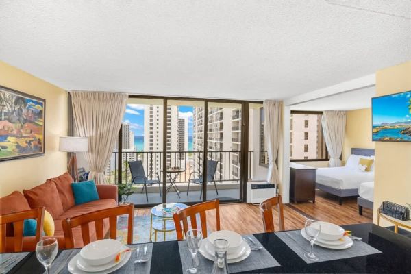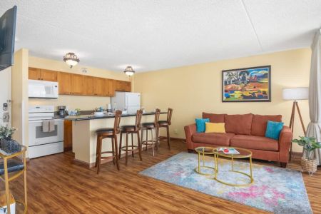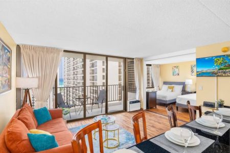 Discover comfort on the 19th floor of Condominium Hotel Waikiki Banyan with this charming one-bedroom condo, offering pleasing partial ocean and city views for up to 4 guests brought to you by Midway Vacations. Locateed conveniently near Waikiki Beach, shopping centers, and diverse dining spots—all just a short walk away. Your stay is made even more delightful with complimentary parking and high-speed wireless internet, ensuring a hassle-free and enjoyable experience!