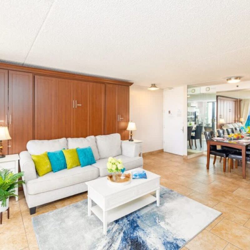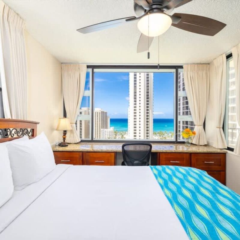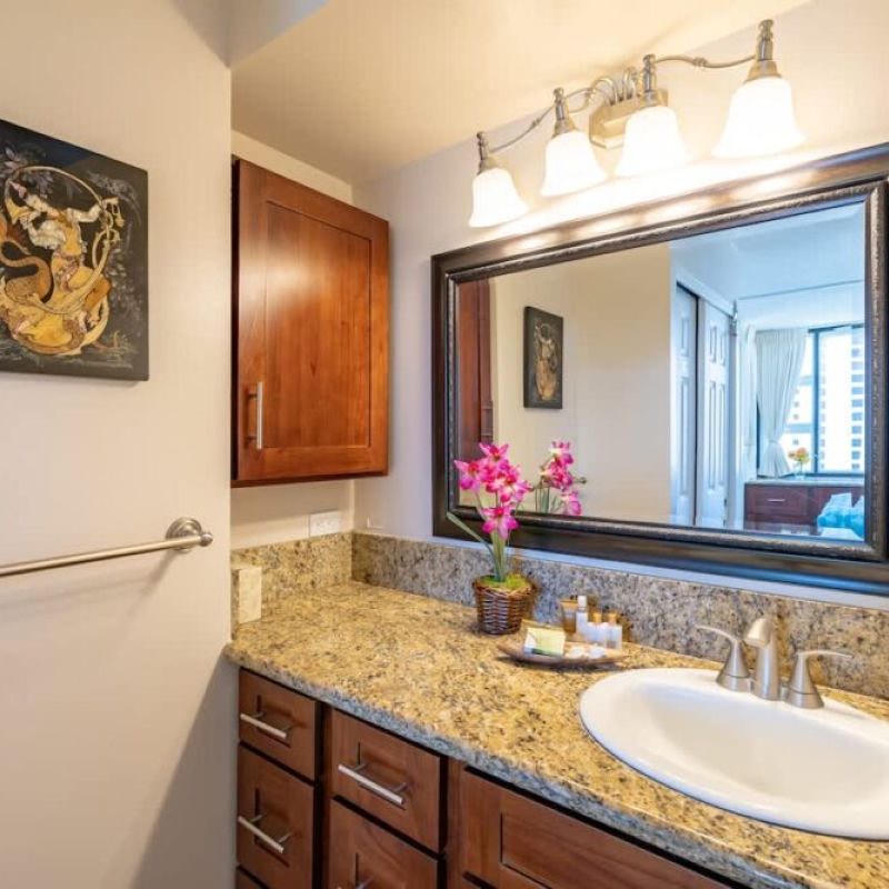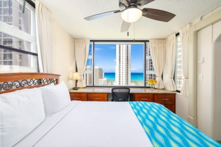 Beautifully renovated 1-bedroom suite at the Condominium Hotel Waikiki Banyan brought to you by Midway Vacations! It accommodates up to 4 guests and is just a stroll away from Waikiki Beach, fantastic shopping spots, and delicious restaurants. Plus, enjoy the perks of free parking and high-speed wireless internet.
