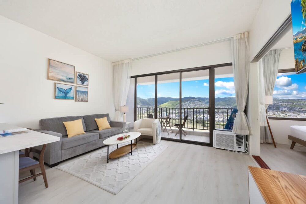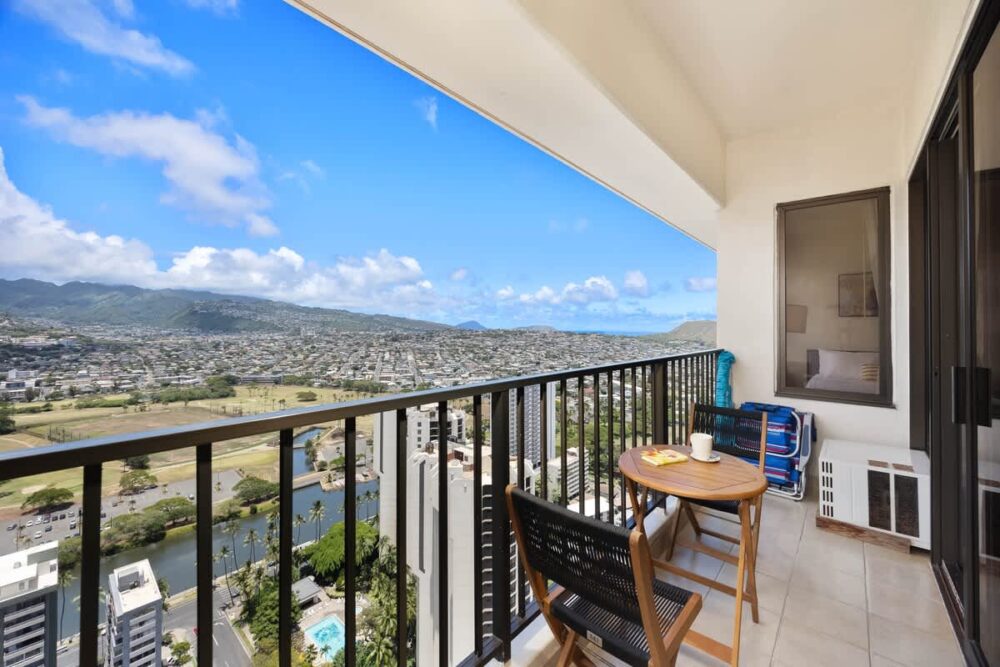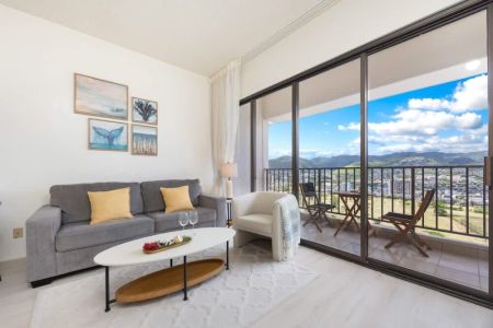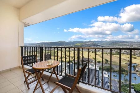 Treat yourself and your family to a stay in our beautiful 1BR condo at Waikiki Banyan brought to you by Midway Vacations! This condo accommodates up to 4 guests, perfect for your family. As you enter, you’ll be greeted with stunning mountains and Ala Wai Canal views. Just a short walk from the iconic Waikiki Beach, surrounded by superb shopping and dining choices, making every moment of your stay exciting. Enjoy free parking allowing you to relax and soak in Waikiki’s beauty without any worries.