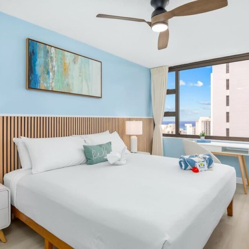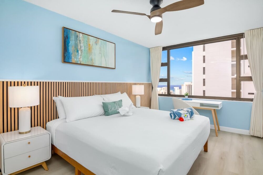 Step into this beautifully renovated chic 1BR condo on the 26th floor of Waikiki Banyan, brought to you by Midway Vacations! This spacious condo comfortably accommodates up to 4 guests, making it perfect for families. You’ll be treated to breathtaking ocean views leaving you in awe. Just a short walk from the world-famous Waikiki Beach, surrounded by fantastic shopping and dining options, ensuring the moment of your stay is packed with excitement and adventure. Enjoy the complimentary parking!
