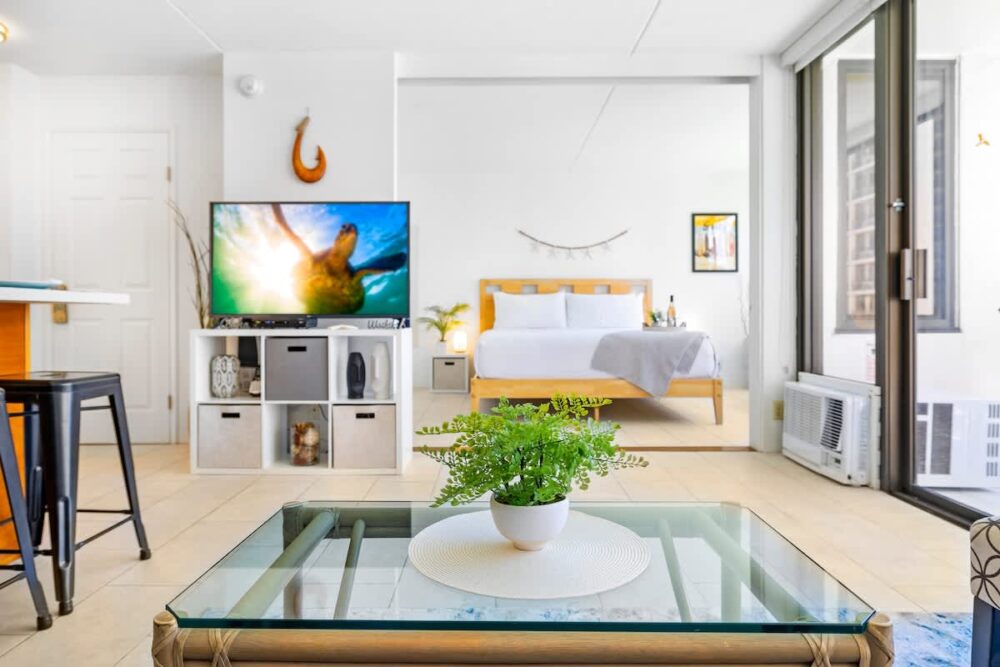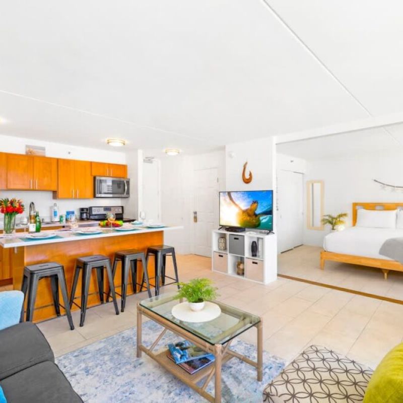 Check out this fantastic 1-bedroom suite at the Condominium Hotel Waikiki Banyan brought to you by Midway Vacations! It accommodates up to 4 guests and is just a stroll away from Waikiki Beach, shopping spots, and amazing restaurants. Plus, enjoy complimentary parking and free high-speed wireless internet! You’ll also get to soak in some beautiful ocean views.