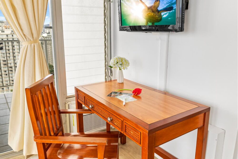 Beautiful 1-bedroom condo on the 23rd floor with ocean views at Condominium Hotel Pacific Monarch. Don’t miss the rooftop pool area with its incredible ocean and city views. Just a short 700-foot stroll from Waikiki Beach and a block away from Duke’s Statue. You’ll love the convenience of walking to Waikiki’s finest restaurants and shopping malls!