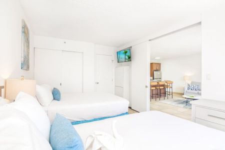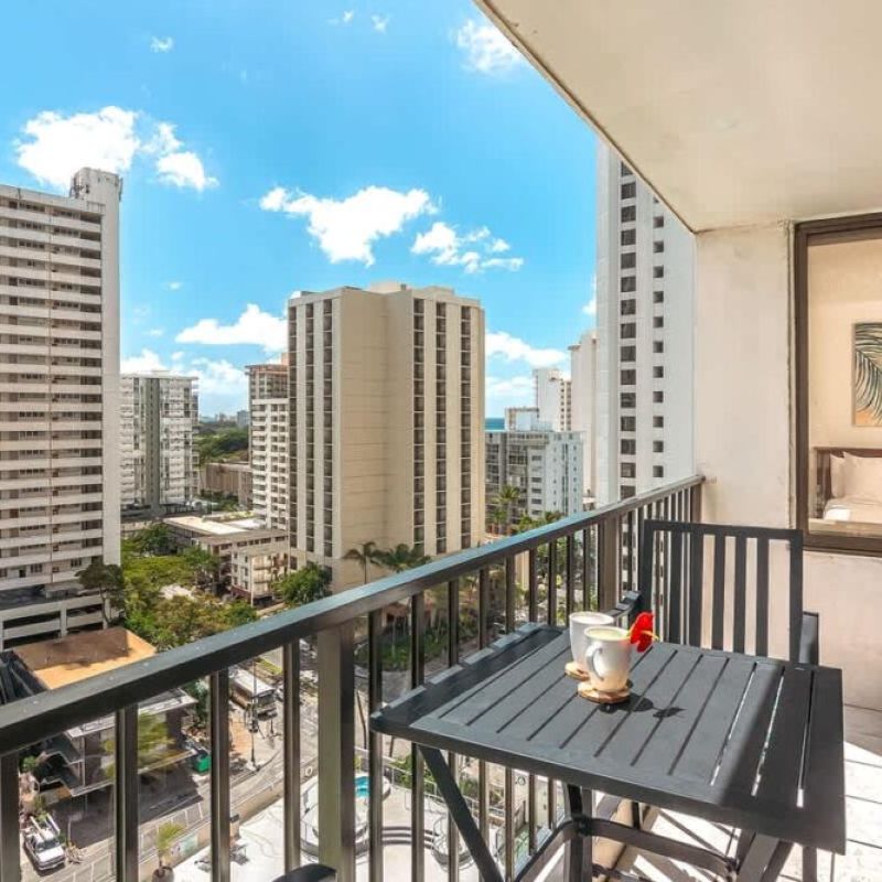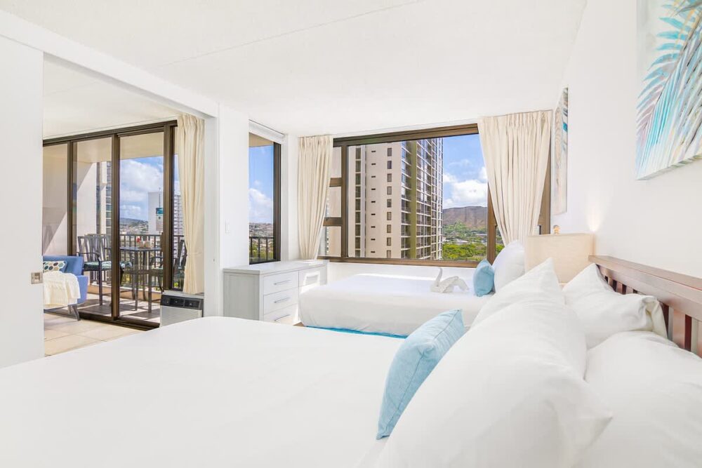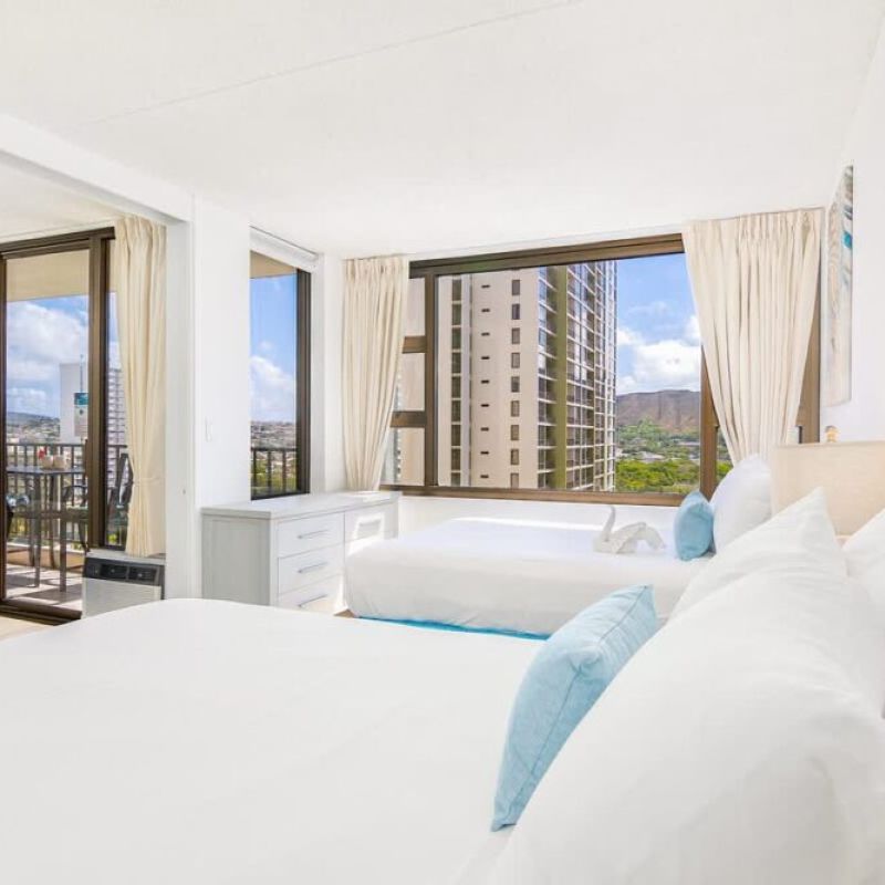 Perched high on the 15th floor of Waikiki Banyan, this cozy 1-bedroom condo invites you and up to 4 guests to experience the magic of Hawaii in comfort and style. With stunning views of Diamond Head and the bustling city below. Just steps away from the iconic Waikiki Beach, your days will be filled with sun, sand, and smiles. You’ll find charming shops and delicious dining spots. Plus, enjoy the added perk of free parking, ensuring your stay is stress-free and enjoyable from start to finish.