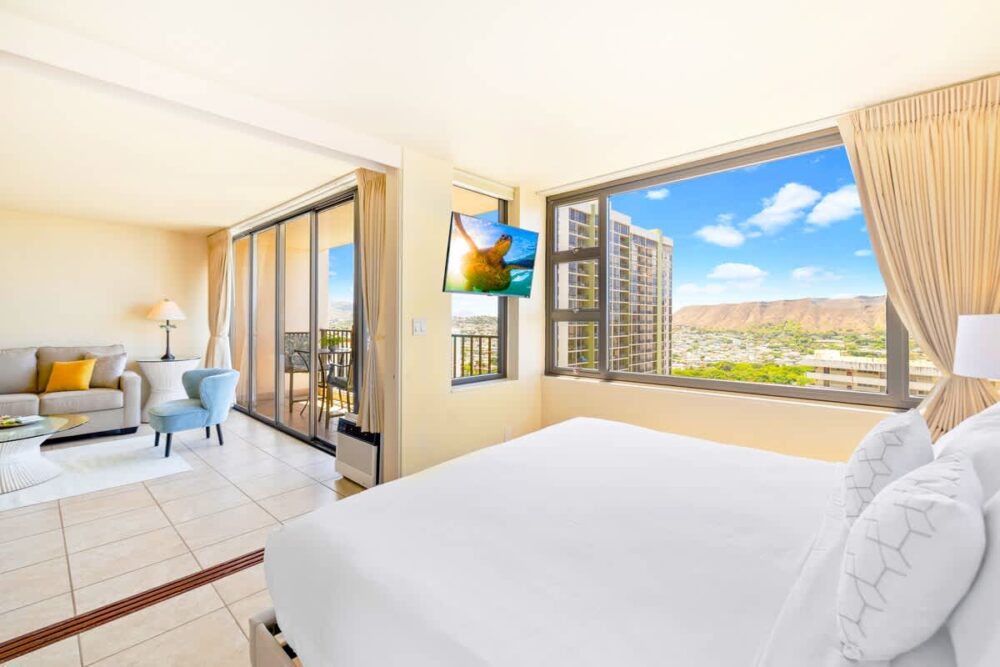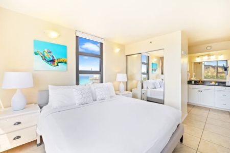 Experience paradise at our beautiful 1-bedroom condo with stunning Ocean and Diamond Head views brought to you by Midway Vacations. Located in the Condominium Hotel Waikiki Banyan, just steps away from famous Waikiki Beach, shopping centers, and restaurants. Enjoy free internet, parking, and access to a large recreation area with a pool, hot tub, BBQ area, playground, and sundeck. This unit has undergone some furniture upgrades, ensuring you a comfortable and luxurious stay!