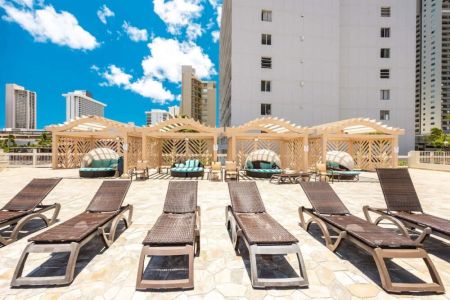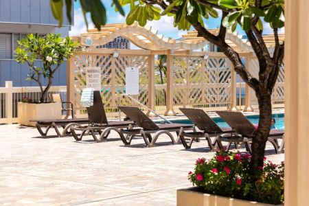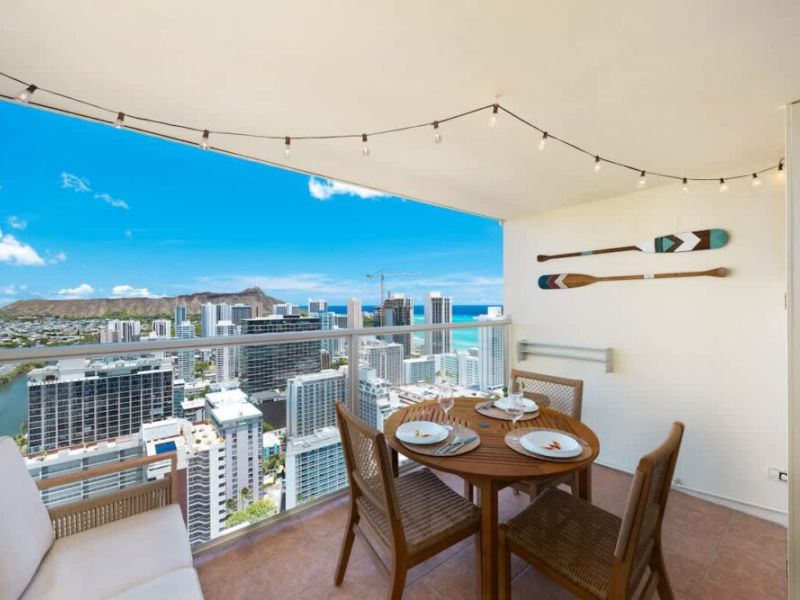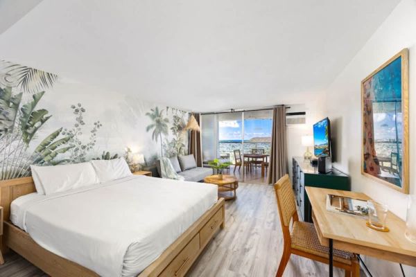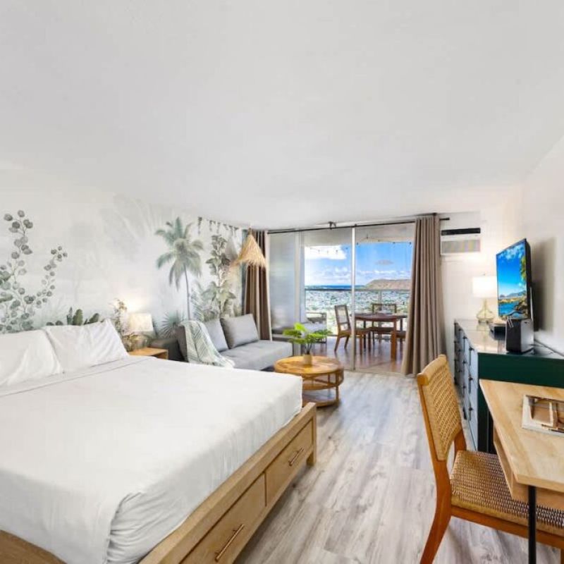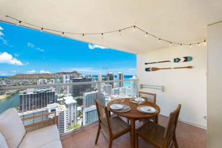 Welcome to this beautifully renovated studio on the 42nd floor of Island Colony, where sweeping views of the sparkling ocean and iconic Diamond Head create the perfect backdrop for your stay. Thoughtfully designed for comfort and charm, this cozy retreat is ideal for two guests seeking a serene escape in the heart of Waikiki. For added convenience, on-site parking is available for $45 per day (rates subject to change without prior notice).