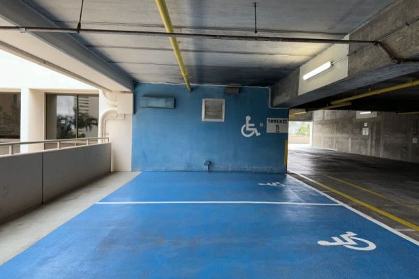You will need to pick up the parking pass that is in the condo before you can park in the parking garage. To do this, you can park in the taxi parking area as long as someone stays with the car.
