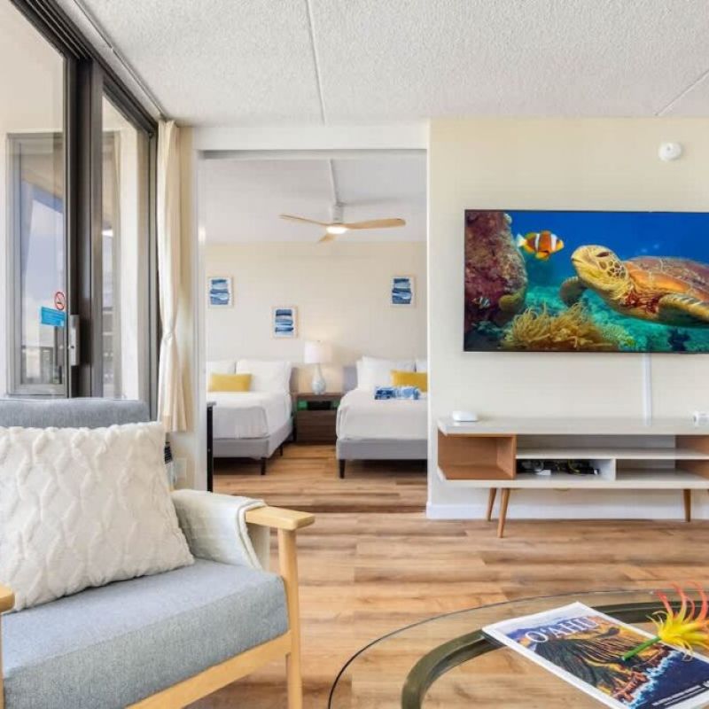 Experience the best of Waikiki in this newly renovated 1BR condo, perfectly positioned to showcase breathtaking views of the ocean and iconic Diamond Head! Accommodating up to 4 guests, this cozy and inviting retreat is located within the popular Waikiki Banyan Condominium Hotel—just a short walk from world-famous Waikiki Beach, great shopping, and a variety of delicious dining options. Enjoy the added perks of free parking and high-speed Wi-Fi, making your stay as seamless as it is relaxing.