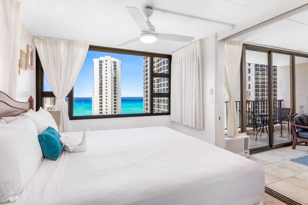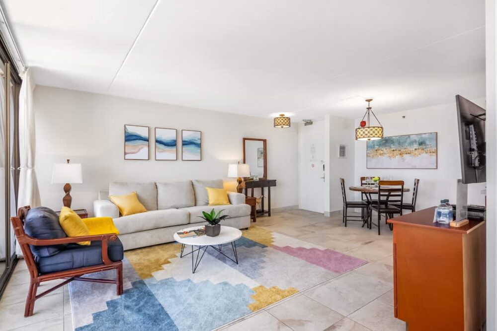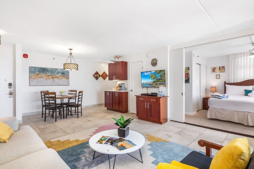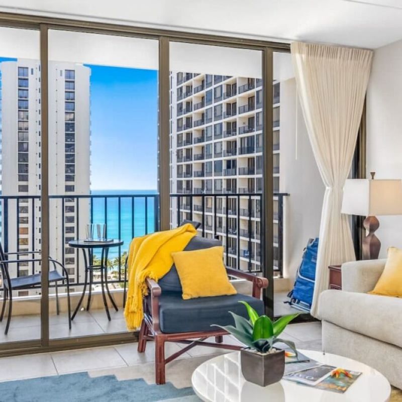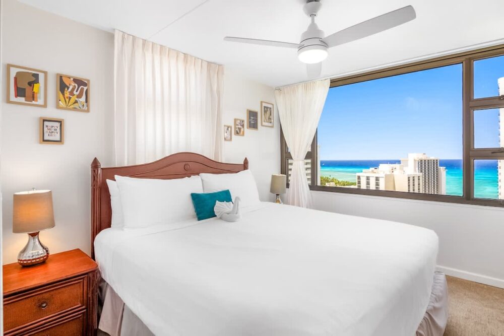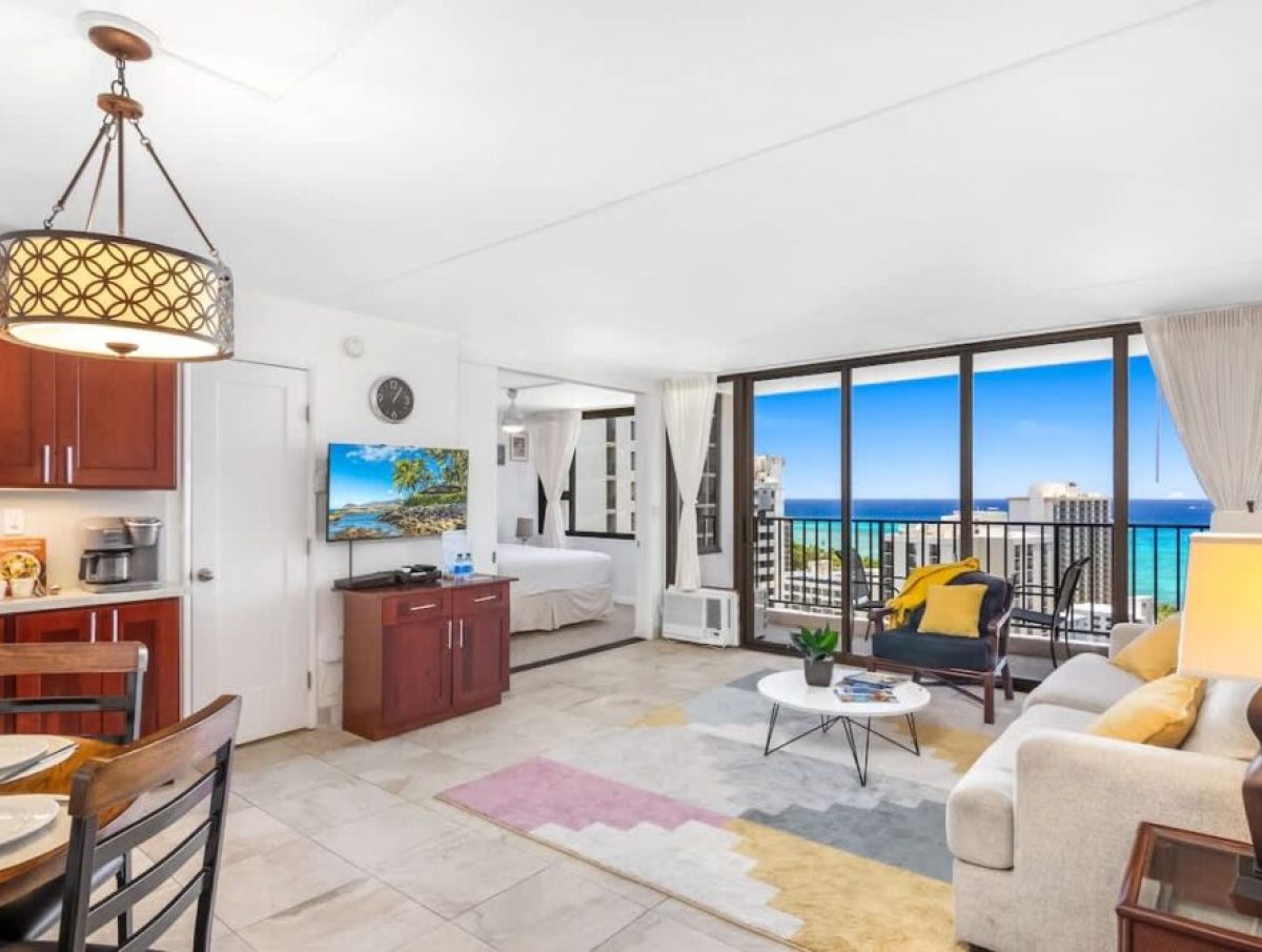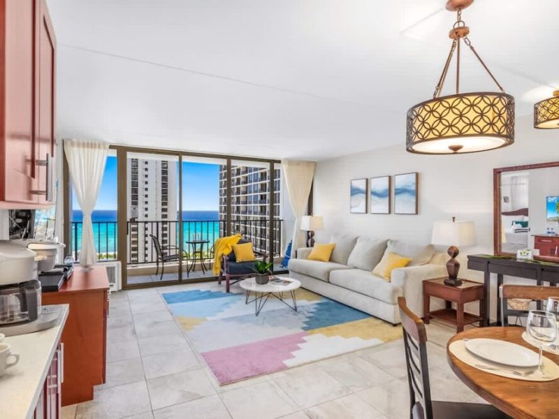 Spacious and well-located 1 bedroom 26th-floor condo in the Condominium Hotel Waikiki Banyan brought to you by Midway Vacations. With panoramic Ocean and Diamond Head views that sleeps 4. Walking distance to Waikiki Beach, shopping, and restaurants. Free parking and high-speed wireless internet.