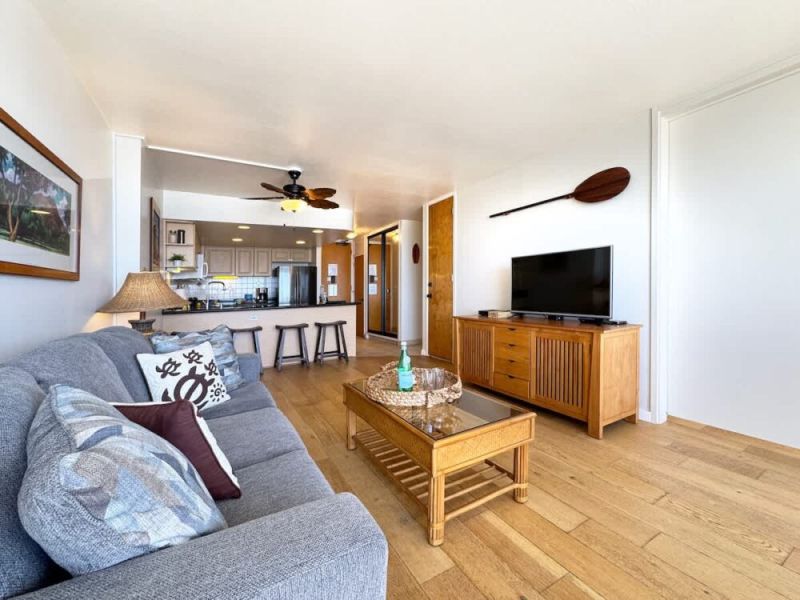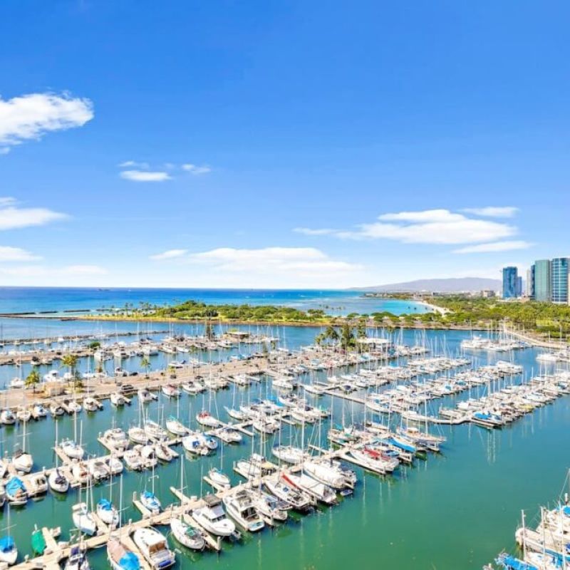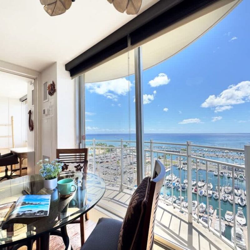 Experience the magic of this condo with its simple yet captivating charm, offering wide-open views of the ocean, yacht harbor, and Magic Island. Let the stunning sunsets add an extra touch of allure, turning your stay into a delightful and interesting retreat.
