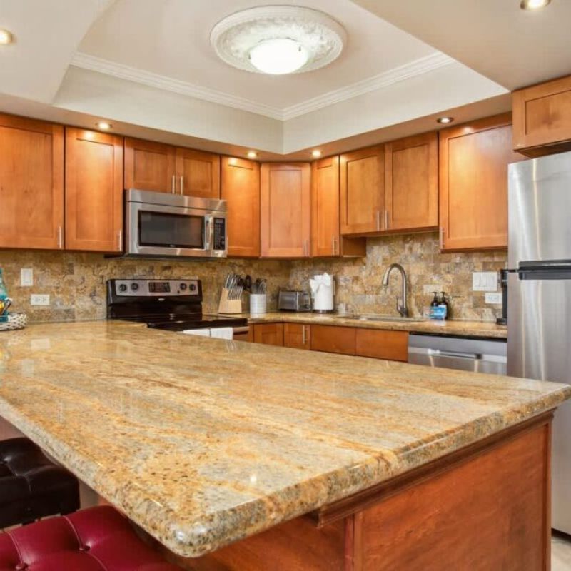 We were very excited to plan for this stay at Kamaole Sands. We had been looking forward to the trip for some time and when we arrived the accommodation was exactly as shown in pics and the view from the lanai was exceptional. We thoroughly enjoyed the unit, we like to cook our own food and the kitchen was well equipped and we were steps away from the bbqs which were spotlessly cleaned daily. We watched the sunset every night while we cooked. Bed was very comfortable and the entire unit is spacious.