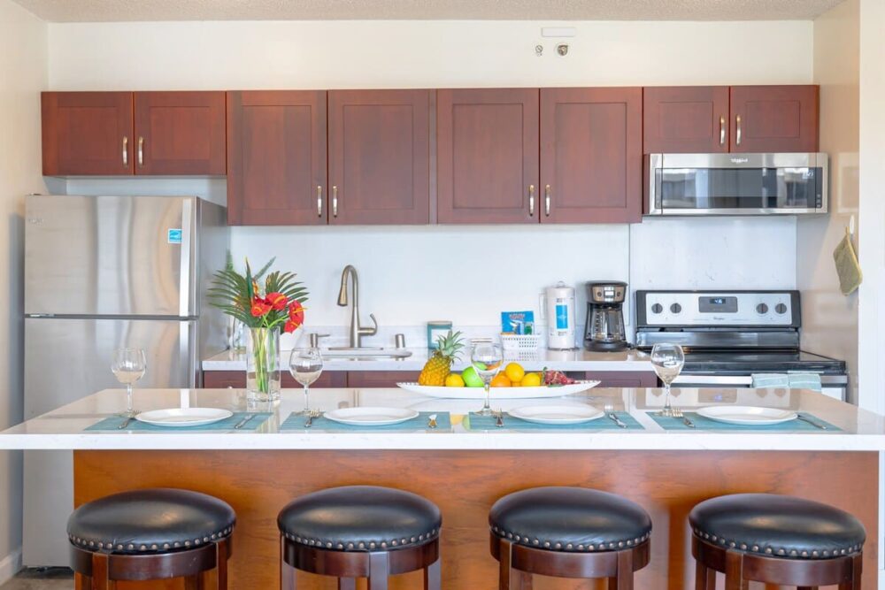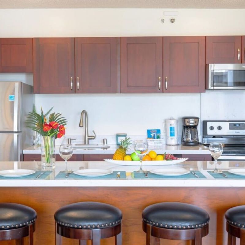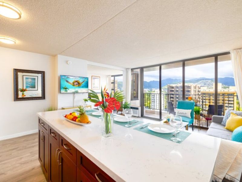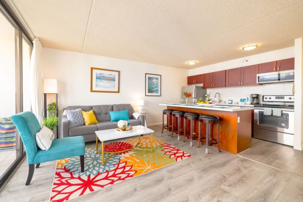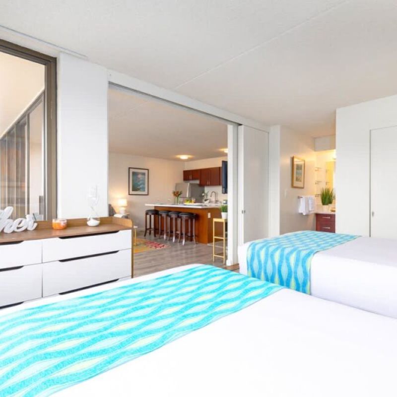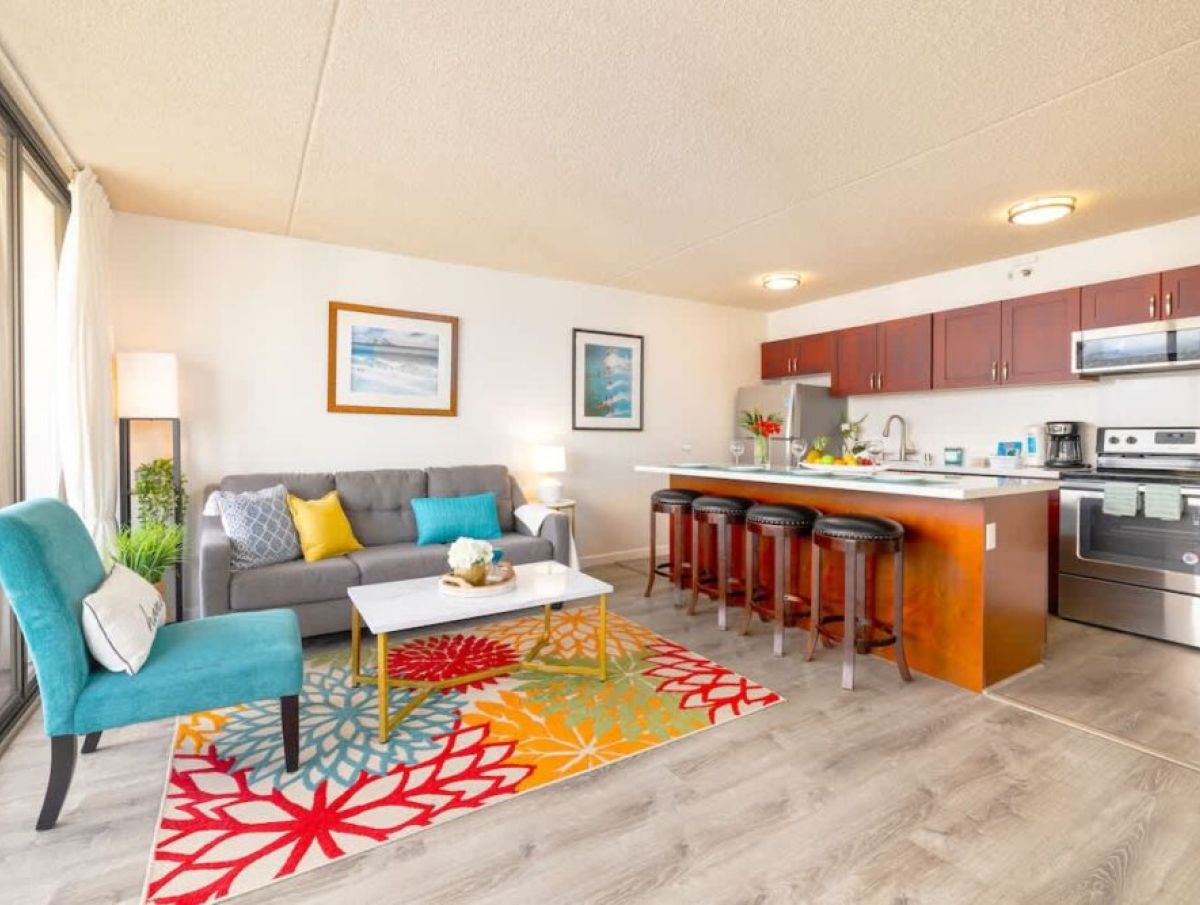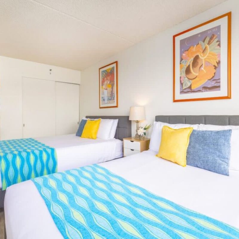 A beautiful 1-bedroom condo at the Waikiki Banyan brought to you by Midway Vacations, perfect for accommodating up to 4 guests! It’s just a stroll away from the world-renowned Waikiki Beach, as well as an array of fantastic shopping and dining options. Enjoy the added perks of free high-speed wireless internet and parking. Plus, take in the stunning mountain and city views from both the bedroom and your private balcony!