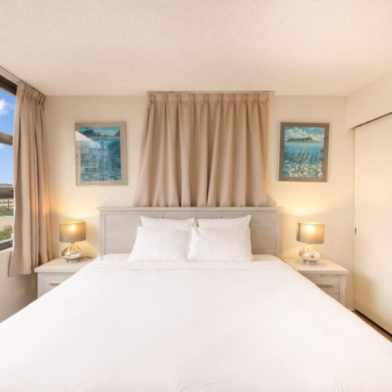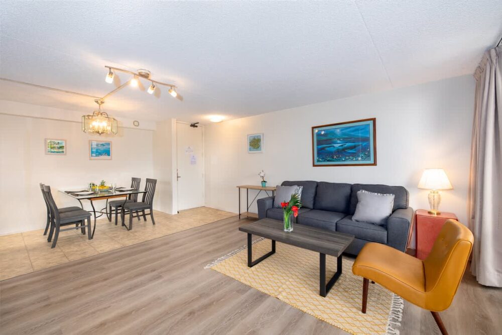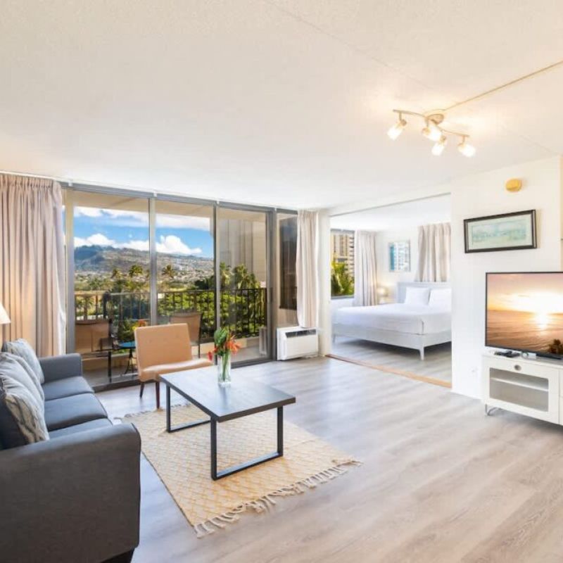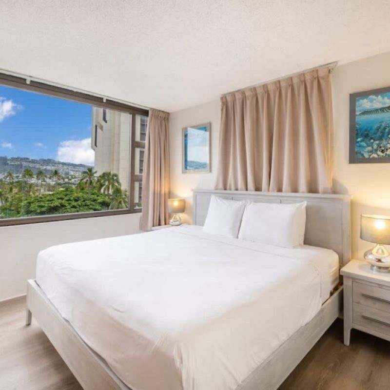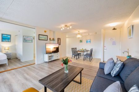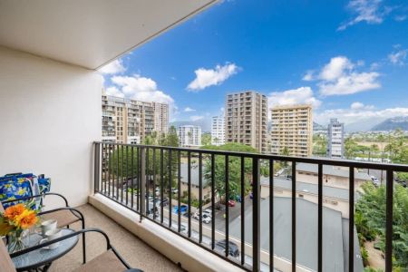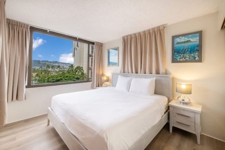 Lovely 1-bedroom suite nestled within the Condominium Hotel Waikiki Banyan brought to you by Midway Vacations, accommodating up to 4 guests. Just a stroll away from the stunning Waikiki Beach, as well as various shopping outlets and delightful restaurants. Enjoy the convenience of complimentary parking and high-speed wireless internet! Revel in picturesque mountain and city views from the bedroom and lanai, while the kitchen offers captivating views of Diamond Head!