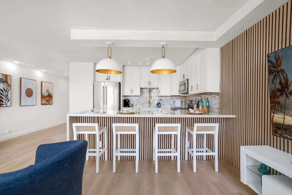 Amazing location and an immaculate fully renovated airbnb, everything pretty much looks brand new. It even had beach chairs we were able to use for our stay, there is a beautiful beach just a short walk away. We loved that there were in unit washer…
