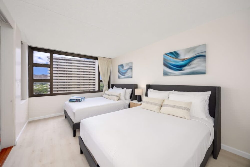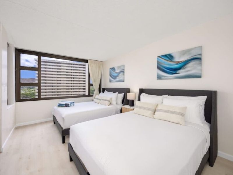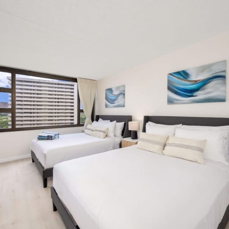 Experience island comfort in this newly renovated 1-bedroom at the Waikiki Banyan, brought to you by Midway Vacations. Just a short stroll to Waikiki Beach, shops, and restaurants, the unit features beautiful views of Diamond Head, the city, and partial ocean from the private balcony. Enjoy free high-speed Wi-Fi, complimentary parking, and beach essentials including 2 beach chairs, an umbrella, and towels, with snorkeling gear and a beach mat available upon request for the ultimate beach day!