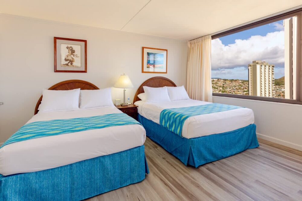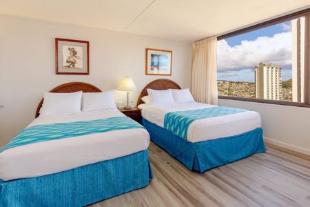 Experience the beauty of our 1-bedroom condo boasting spectacular ocean views and Diamond Head brought to you by Midway Vacations! Nestled in the Condominium Hotel Waikiki Banyan, it comfortably accommodates up to 4 guests. It’s conveniently located within walking distance to the pristine Waikiki Beach, vibrant shopping areas, and an array of delicious restaurants. As a bonus, revel in the perks of complimentary parking and high-speed wireless internet.