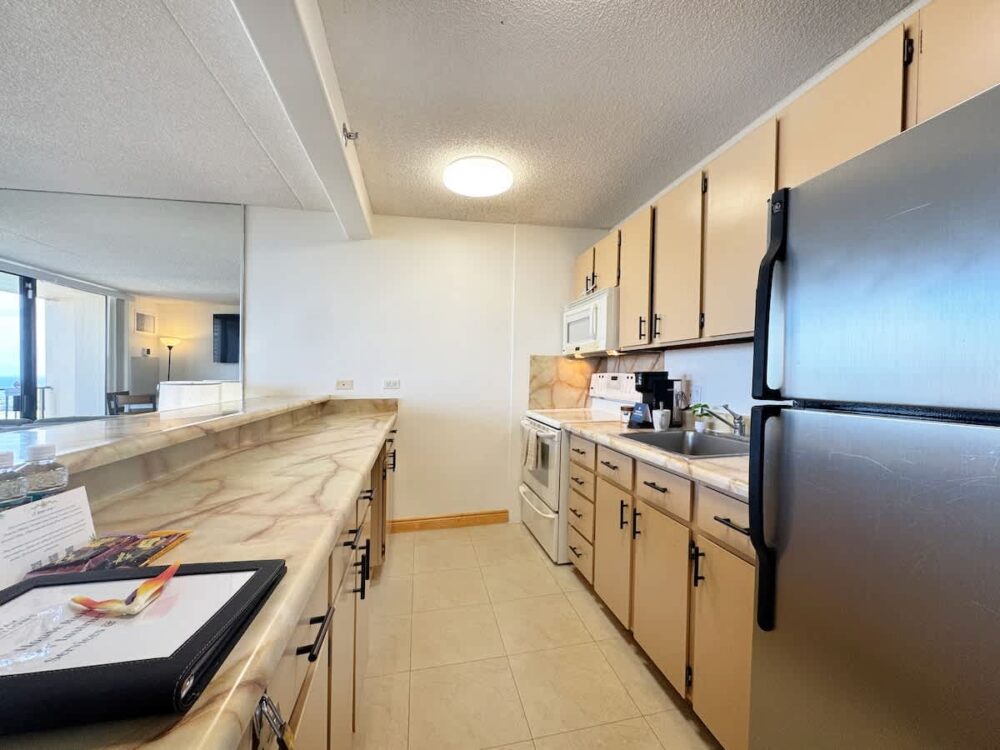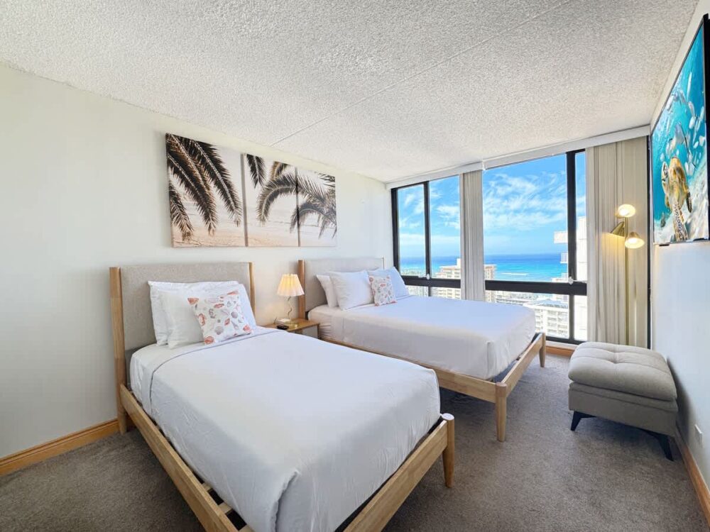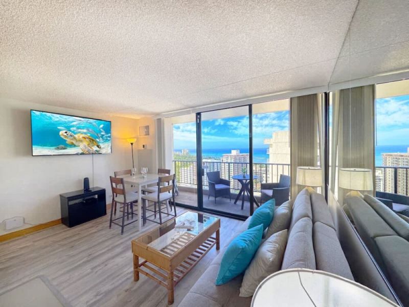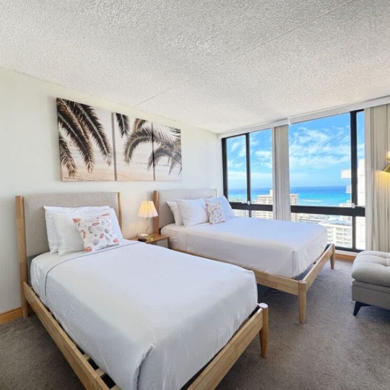 This 26th-floor condo offers stunning ocean views and is just a short walk to the famous Waikiki Beach. This 1BR retreat features a queen and full-size bed, a bathroom with tub/shower combo, A/C, and a full kitchen. Enjoy free WiFi, free parking, and complimentary beach gear to make the most of your island adventures. Perfect for couples, families, or friends seeking an unforgettable Waikiki getaway!