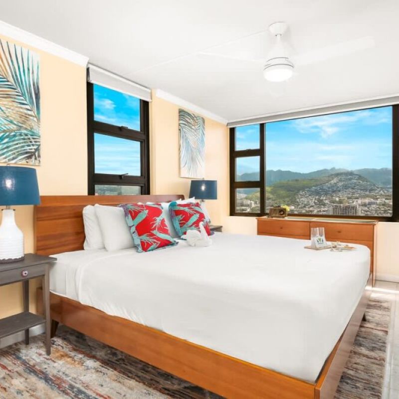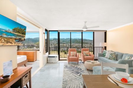Unwind and enjoy the tranquility of this sophisticated one-bedroom condo on the 37th floor of the Condominium Hotel Waikiki Banyan brought to you by Midway Vacations. Revel in panoramic views of the mountains and cityscape, perfect for accommodating 4 guests. Conveniently located within walking distance of the renowned Waikiki Beach, shopping districts, and various dining options. The property offers complimentary high-speed wireless internet and parking for your convenience.