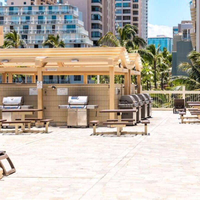 Barbecues. Subject to availability, occupants may cook on the recreation deck from 8:00 am to 10:00 pm using the installed cooking facilities. Reservations are not necessary but may be made with Security if desired.