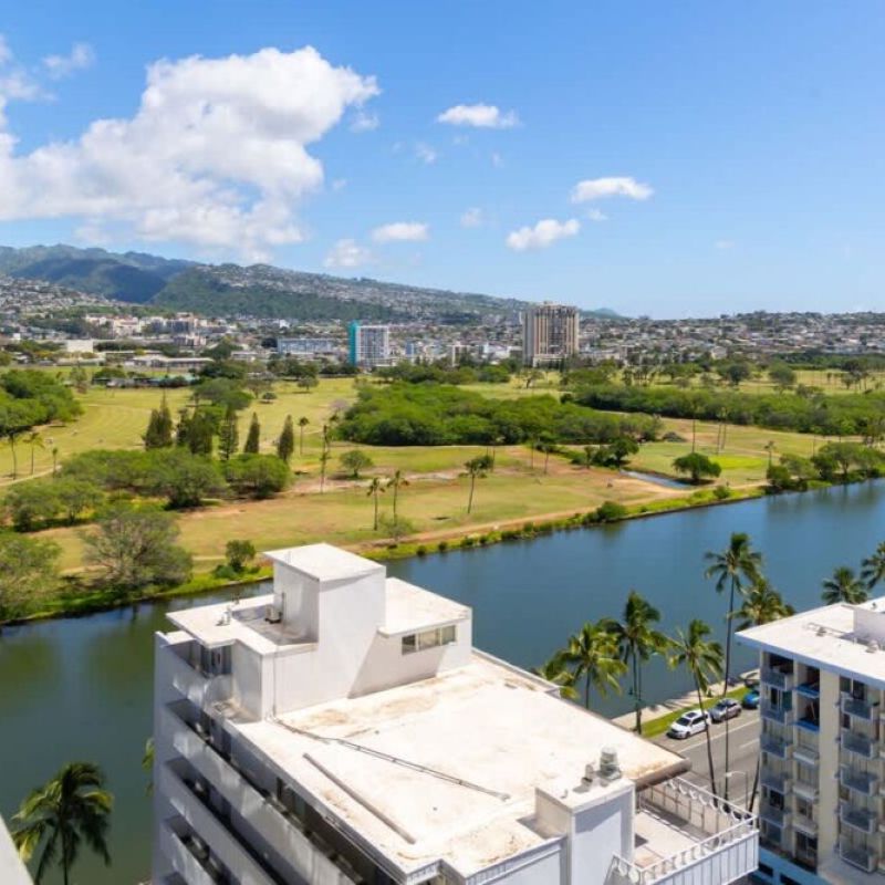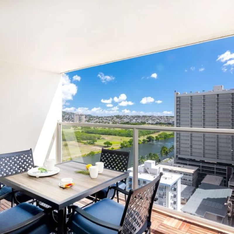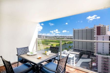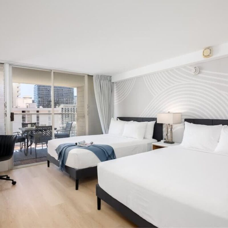 Discover this newly renovated studio with Ala Wai Canal view, split AC, and 2 Queen beds at Island Colony!