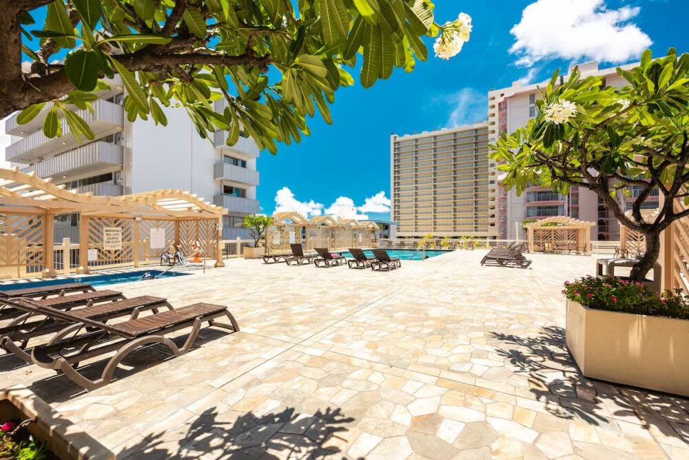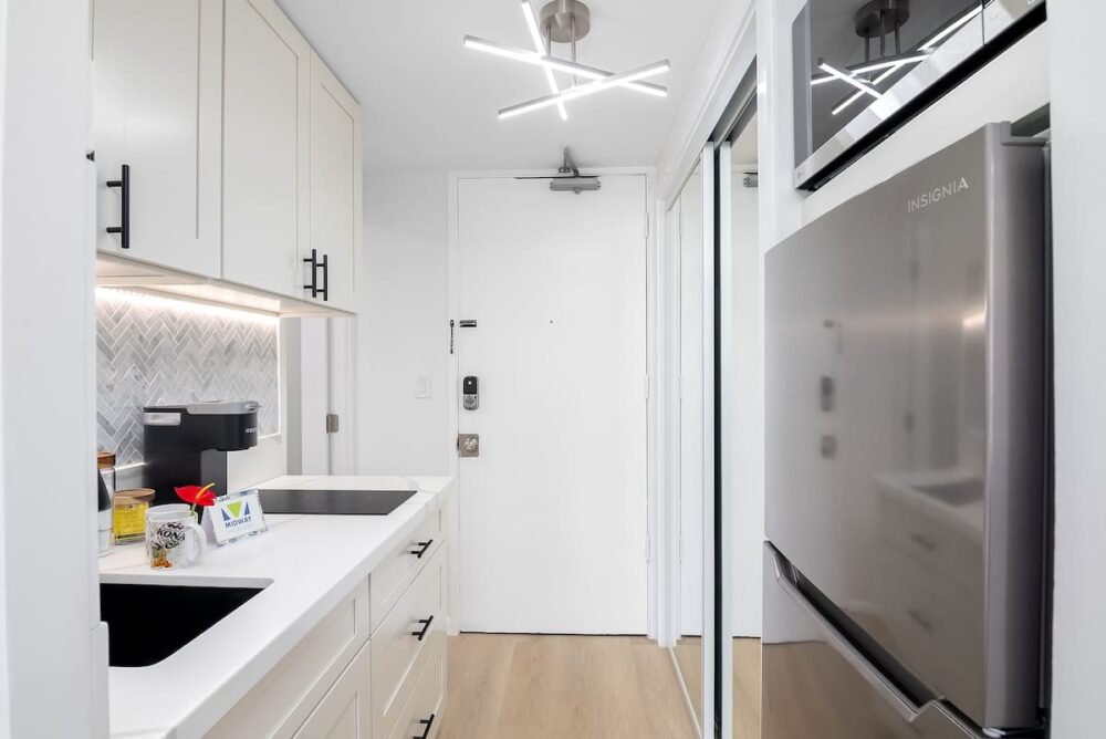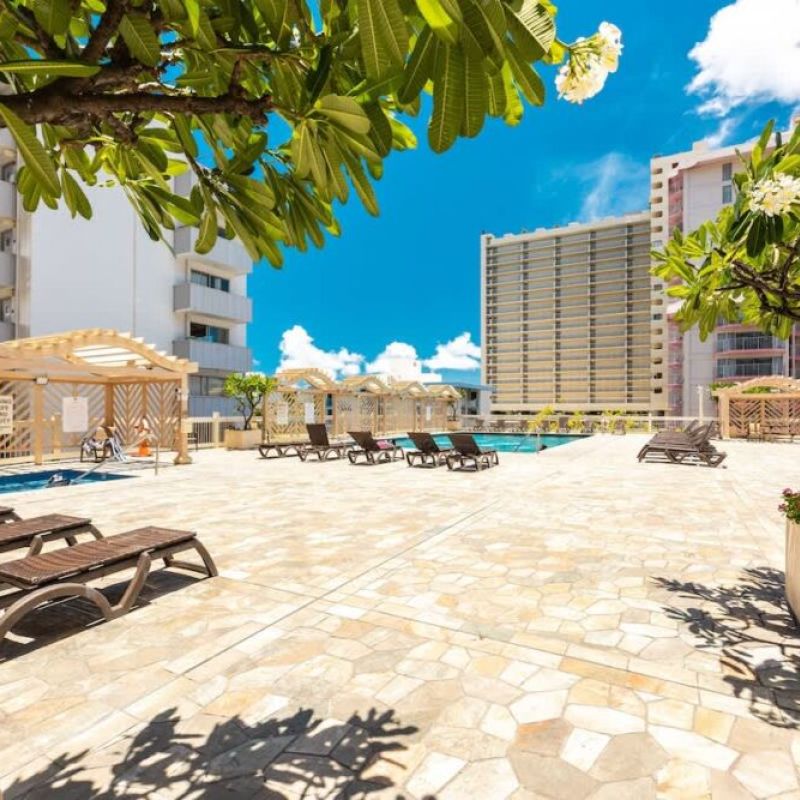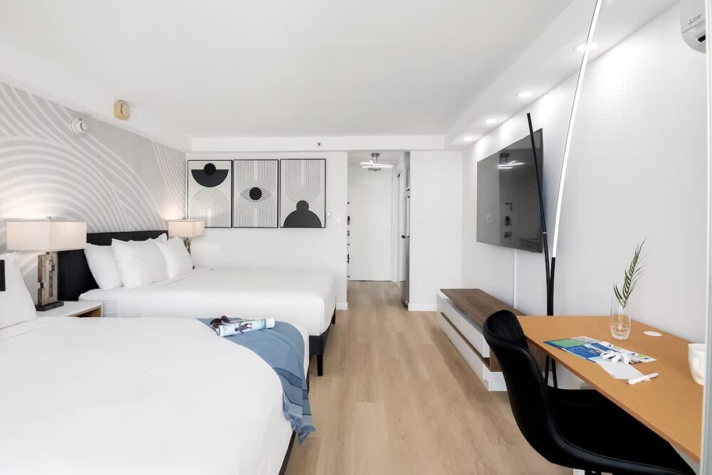 Just a 7-minute stroll to the world-famous Waikiki beach, this stylish retreat features 2 queen beds, a 65″ Smart TV, split AC, free WiFi, and a well-equipped kitchenette. Perfectly located near shopping, dining, and nightlife for the ultimate island experience! Gym access is available for $10 (one-time fee), and on-site parking is $45/day (prices are subject to change).