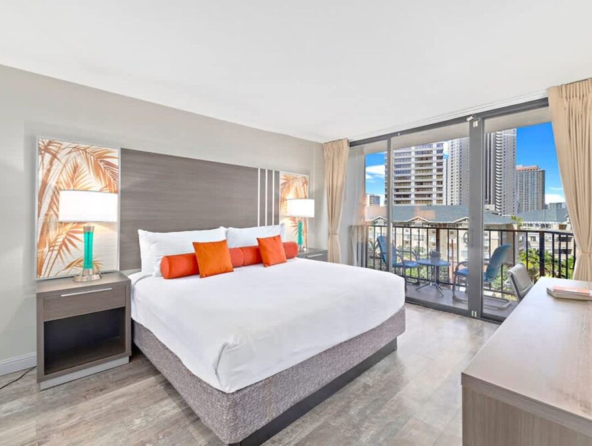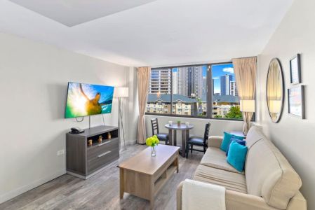 Beautiful remodeled 1-bedroom unit in the Condominium Hotel Aqua Palms Waikiki, brought to you by Midway Vacation. Accommodates up to 4 guests, walking distance to the beach, Ala Moana Shopping Center, and restaurants. Free high-speed wireless internet. Hotel parking is available on a first-come, first-served basis with unlimited in-and-out access for $45 per night (price may change).