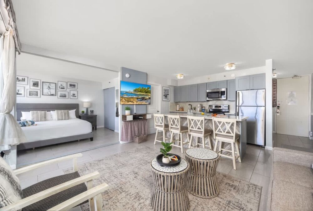 Enjoy a relaxing escape in this newly renovated 32nd-floor Waikiki Banyan condo that sleeps 4!