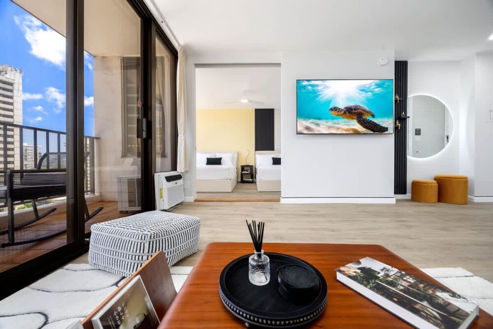 Escape to paradise in this beautifully renovated 1BR condo at the Waikiki Banyan with free parking, hosted by Midway Vacations. Perfect for families or friends, it sleeps up to 4 guests. Step out onto your private balcony and soak in sweeping views of Diamond Head and the city. Just a short stroll away, you’ll find the world-famous Waikiki Beach, vibrant shops, and delicious dining spots. Stay connected with free high-speed Wi-Fi and enjoy the added perk of complimentary parking!