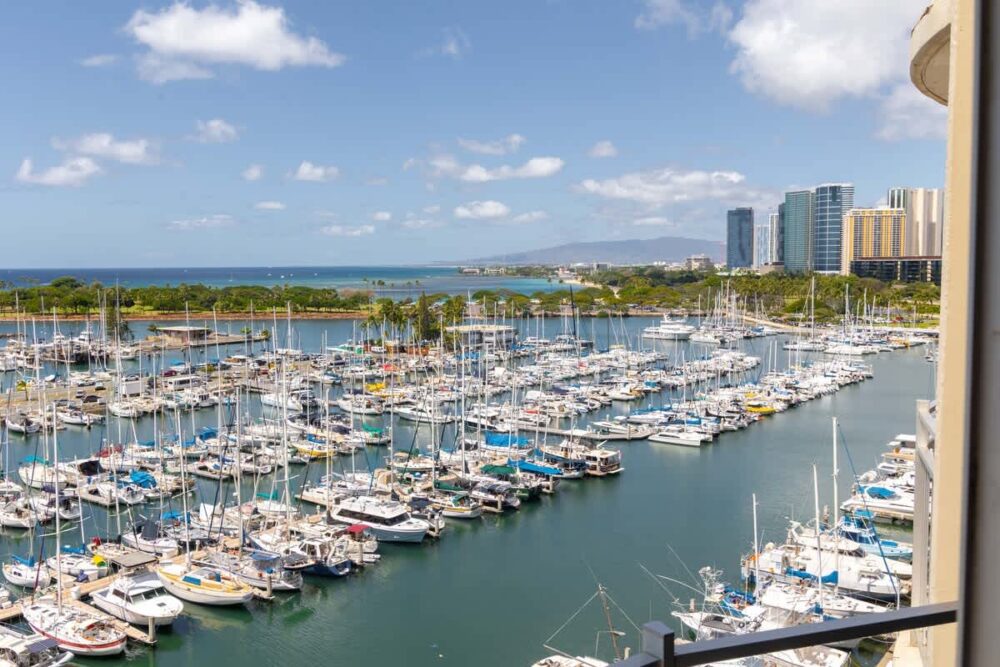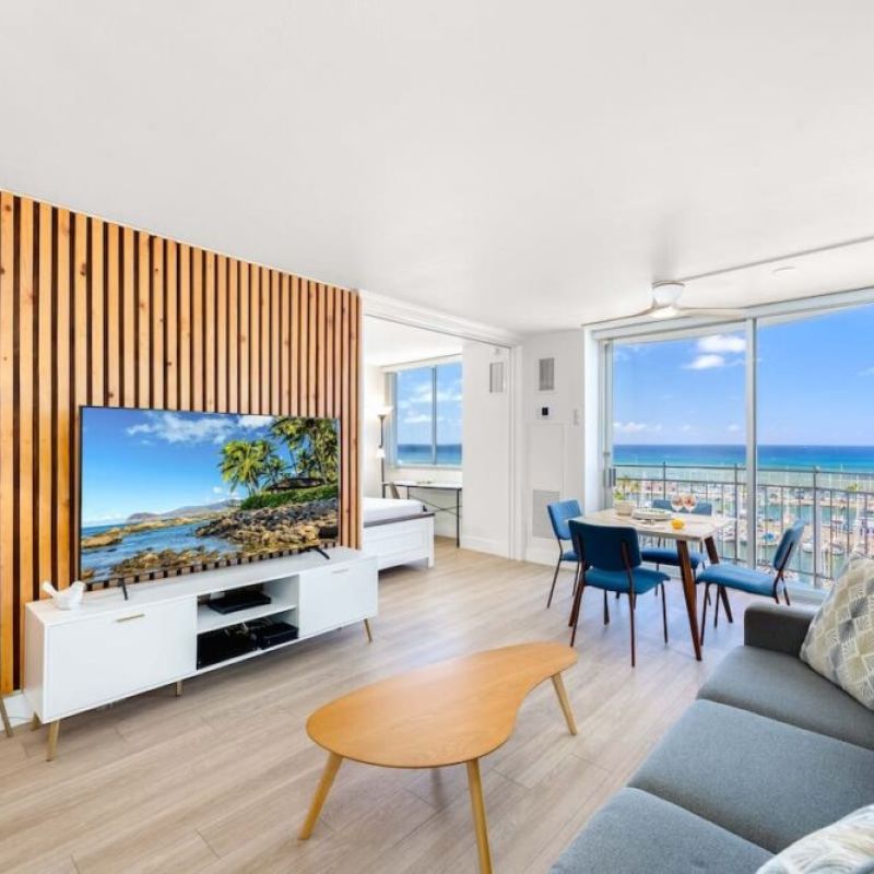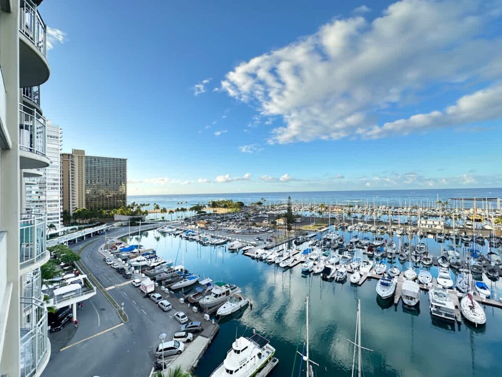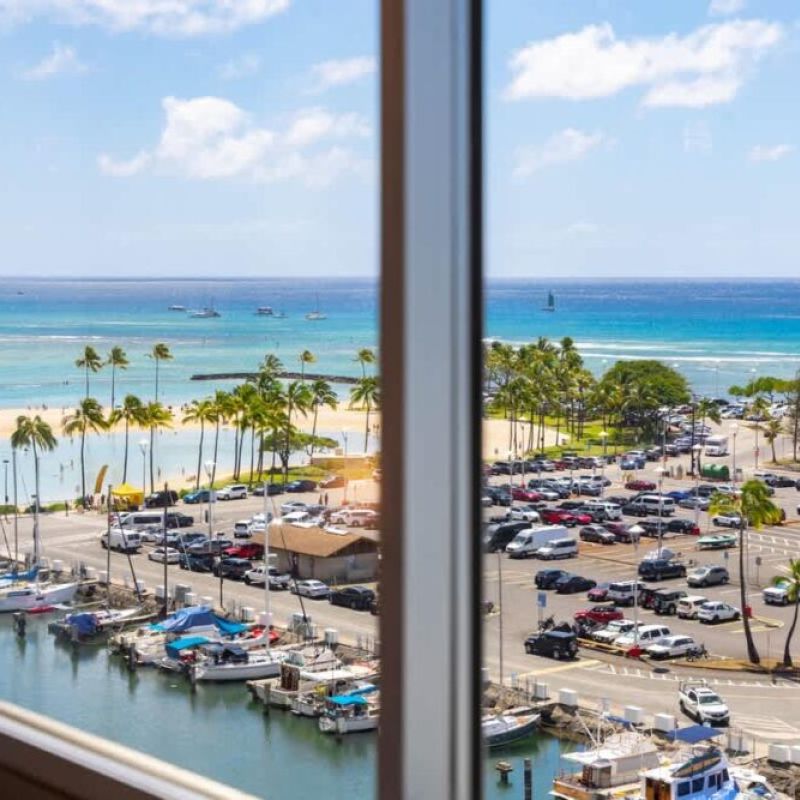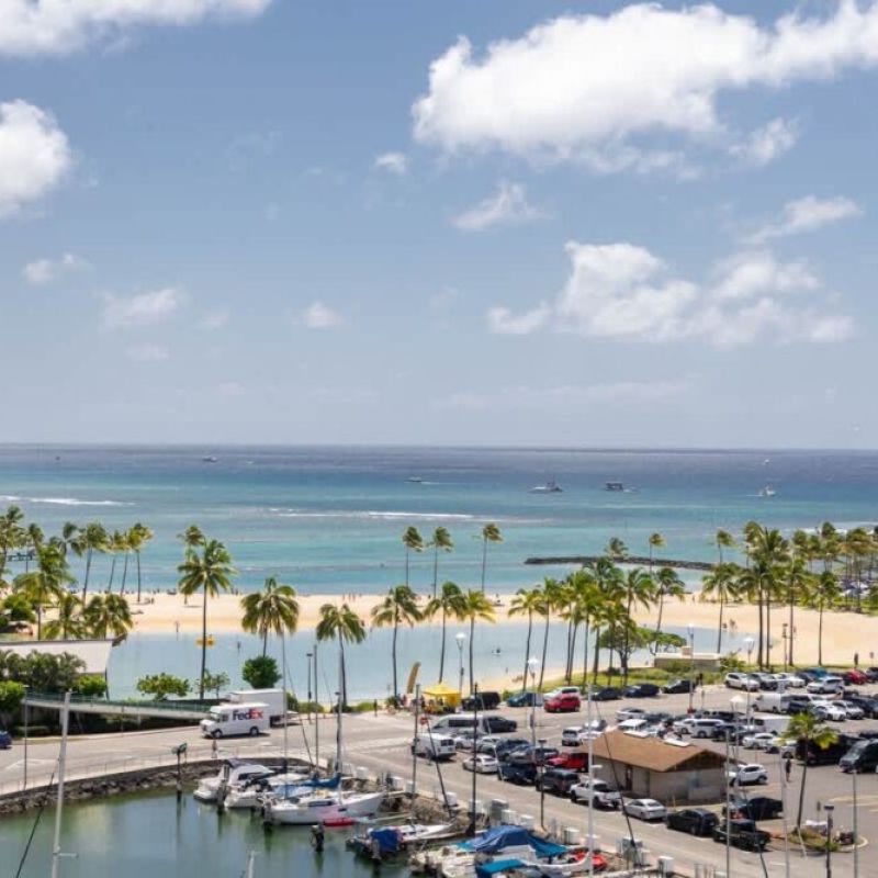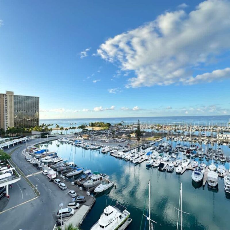 Immerse yourself in paradise with this charming one-bedroom condo at Ilikai Marina, where dazzling sunsets and panoramic views of the ocean and Ala Wai Yacht Harbor await. Perfect for a serene escape, this cozy retreat comfortably hosts up to 4 guests!