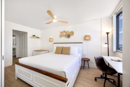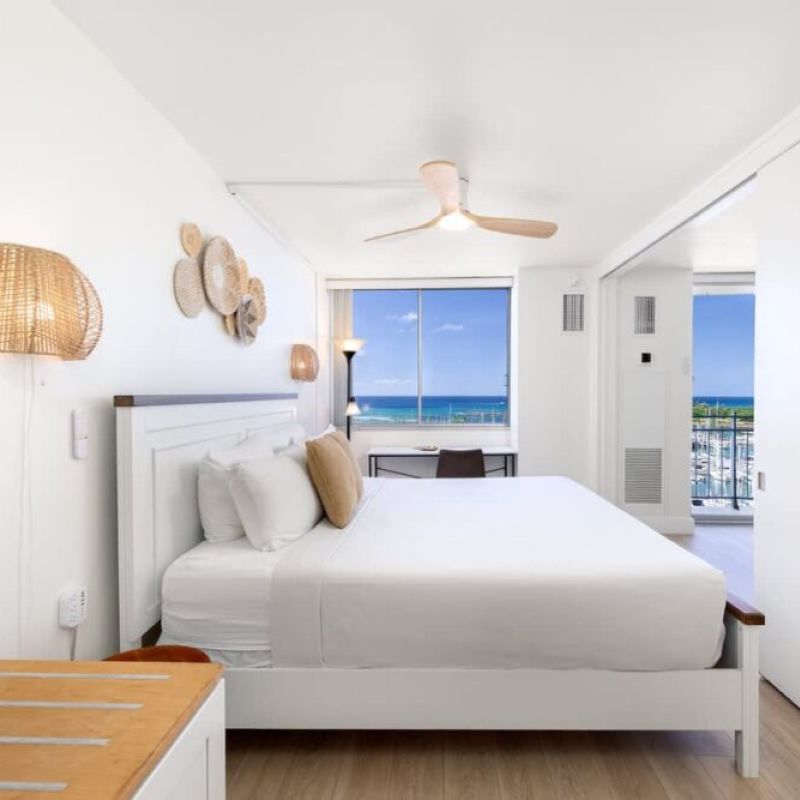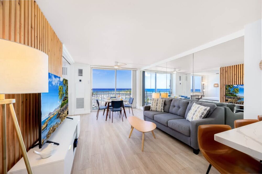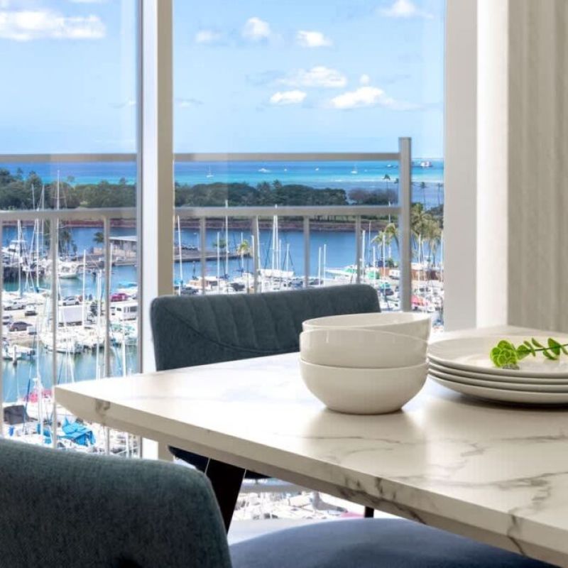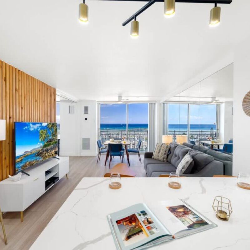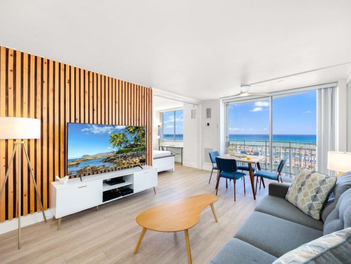 Immerse yourself in paradise with this charming one-bedroom condo at Ilikai Marina, where dazzling sunsets and panoramic views of the ocean and Ala Wai Yacht Harbor await. Perfect for a serene escape, this cozy retreat comfortably hosts up to 4 guests!
