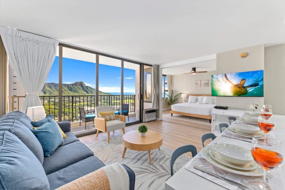 Experience the ultimate in comfort with this newly renovated apartment brought to you by Midway Vacations! Nestled in the heart of it all, you’ll adore the breathtaking Ocean and Diamond Head Views from this centrally located gem. Perfect for a family of 4, enjoy your stay at the Condominium Hotel Waikiki Banyan, just a stroll away from Waikiki Beach, fantastic shopping spots, and delightful restaurants. Plus, revel in the convenience of free parking and high-speed wireless internet!