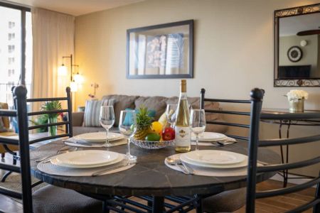 Experience the charm of this beautifully renovated one-bedroom suite at the Condominium Hotel Waikiki Banyan brought to you by Midway Vacations! It accommodates up to 4 guests and is conveniently close to Waikiki Beach, shopping spots, and fantastic restaurants. Plus, enjoy the perks of free parking and high-speed wireless internet! Don’t miss out on the stunning ocean view too!