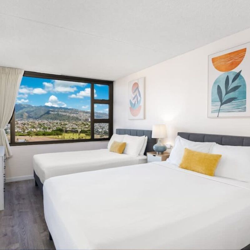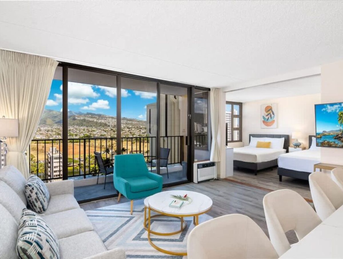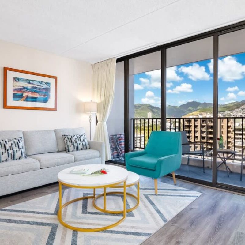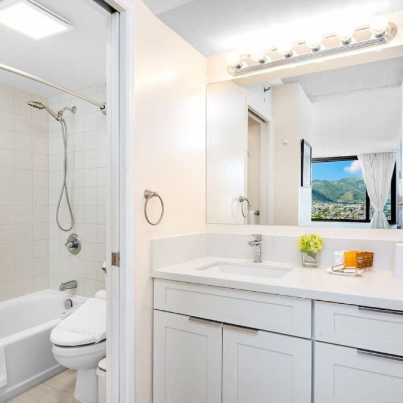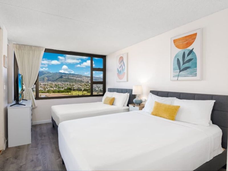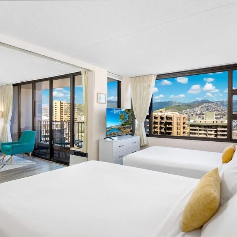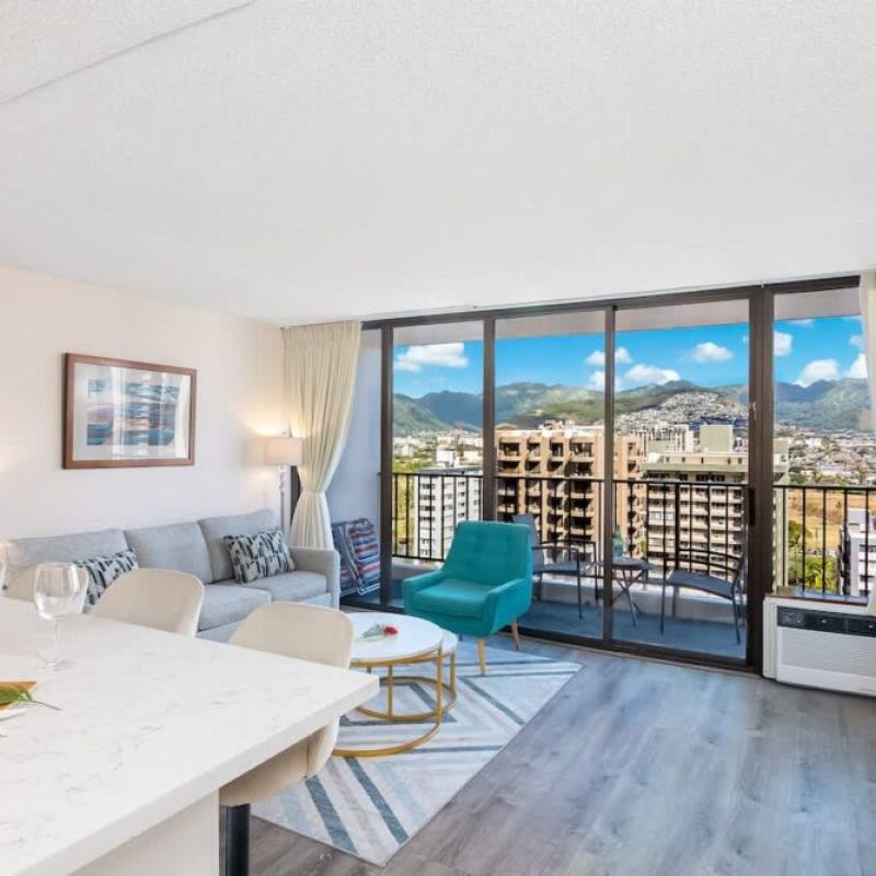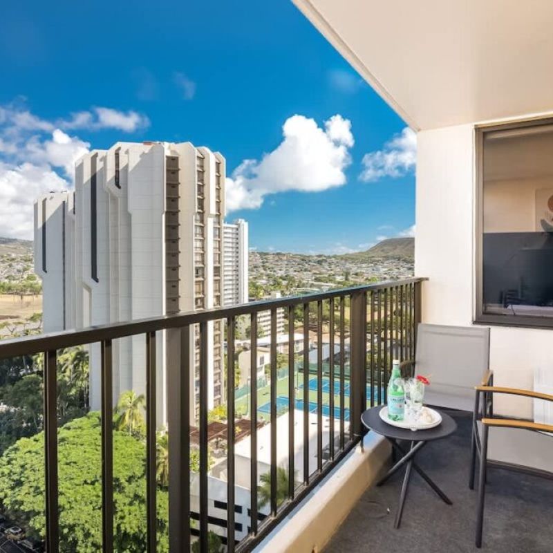 Great 1-bedroom condo at the Waikiki Banyan brought to you by Midway Vacations, perfect for up to 4 guests! You can easily stroll to the renowned Waikiki Beach, nearby shopping spots, and delightful restaurants. Enjoy complimentary high-speed wireless internet and parking during your stay and savor the stunning mountain and city views from both the bedroom and the balcony!