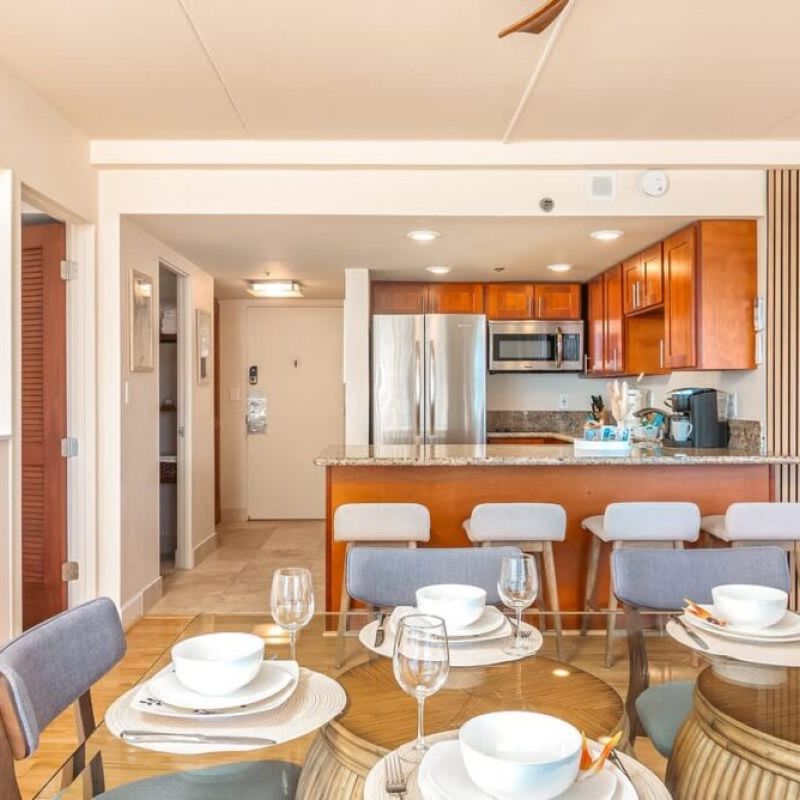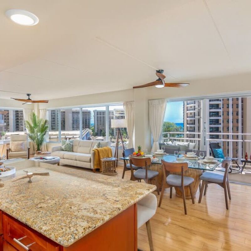Welcome to our beautifully remodeled and spacious 2-bedroom 2-bathroom condo in the heart of Waikiki! This inviting unit accommodates up to 6 guests and resides in the family-friendly Ilikai Hotel, positioned on the west end of Waikiki with captivating south-facing views from the 9th-floor—offering stunning ocean views from the living room and lanai balcony. Experience a stress-free stay with our complimentary parking, making your visit even more convenient!