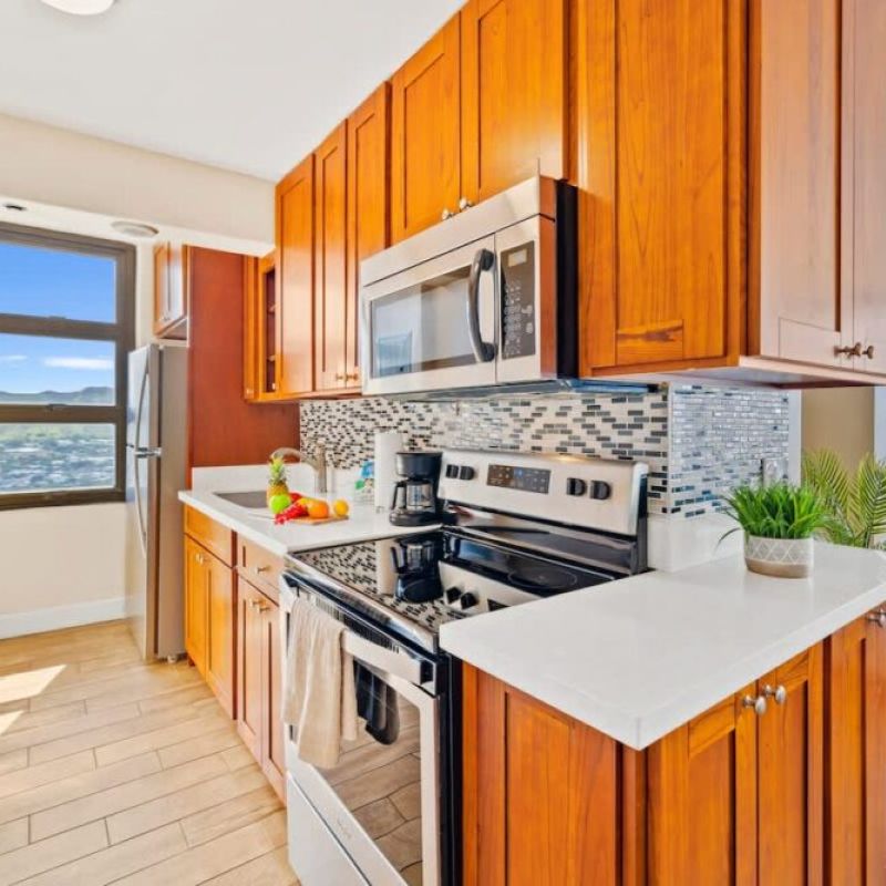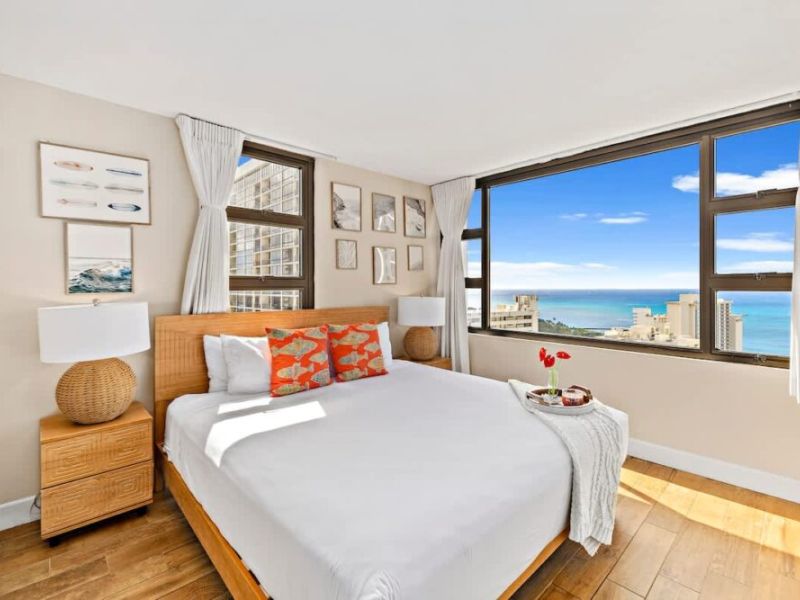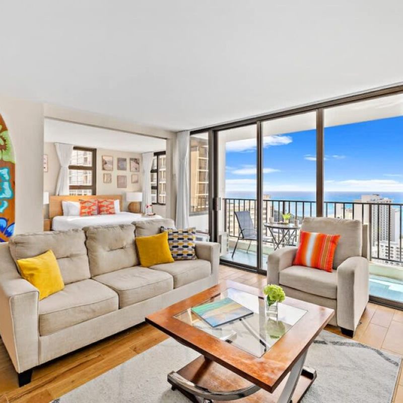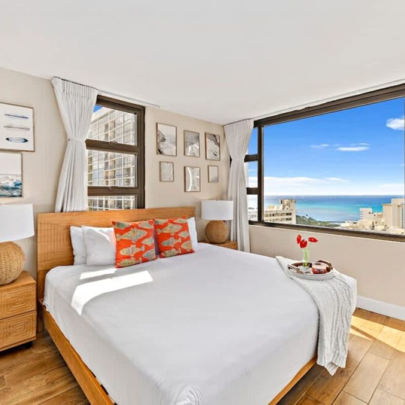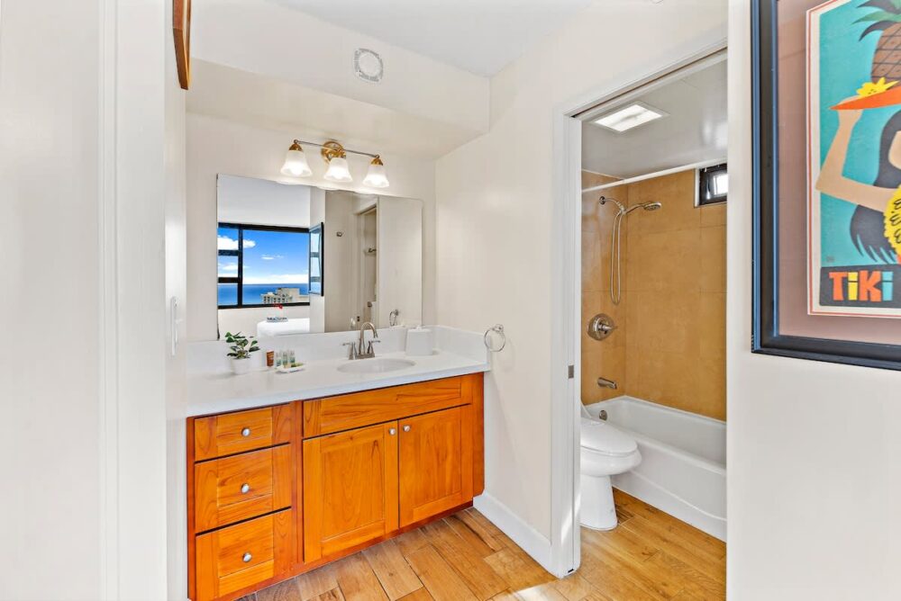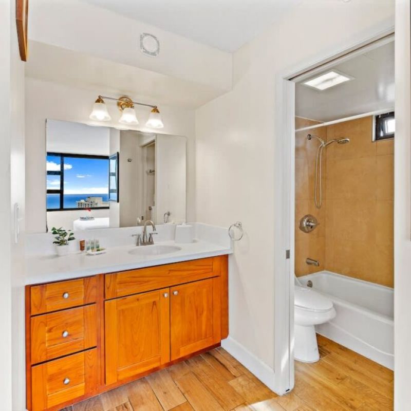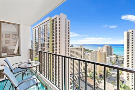 Beautiful and newly updated 1-bedroom condominium on the 30th floor of Condominium Hotel Waikiki Banyan, offering breathtaking panoramic views of the ocean and Diamond Head. Sleeps up to 4 guests and is just a stroll away from the sun-soaked shores of Waikiki Beach, a world of shopping delights, and an array of mouthwatering dining experiences. Plus, you’ll enjoy the added perks of complimentary high-speed wireless internet. Your tropical getaway awaits!