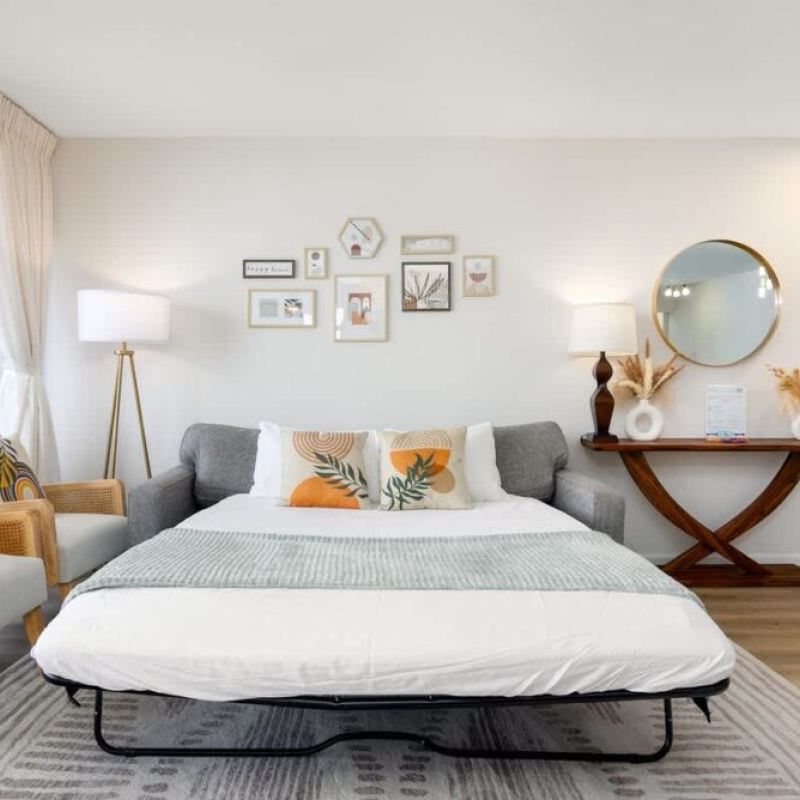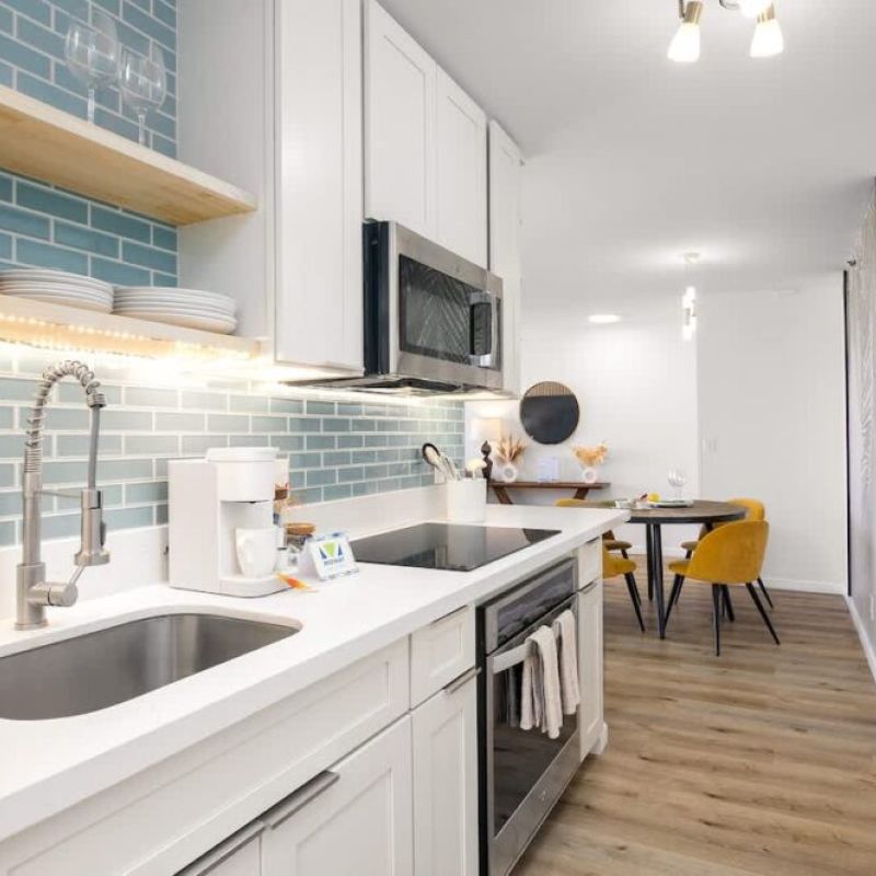 This place was very clean. The pictures are very accurate. The bed and couch could have been more comfortable. The overall layout is open kitchen/dining/living room. The neighbors were quiet and respectful. The elevators get crowded and might hav…