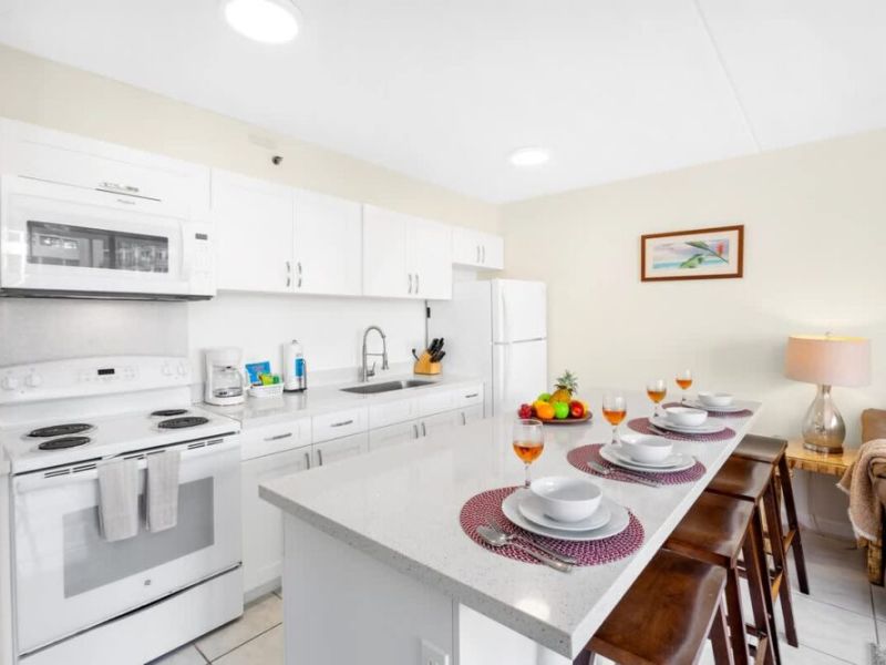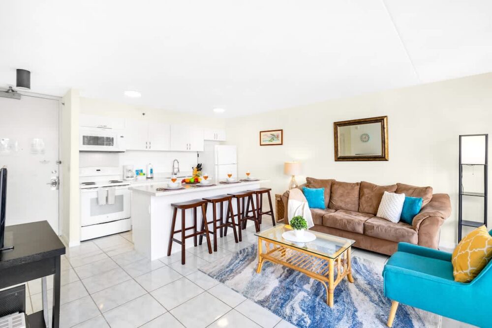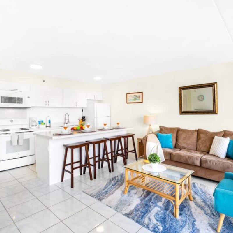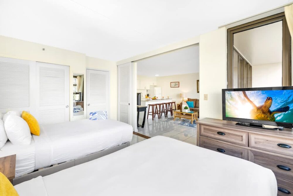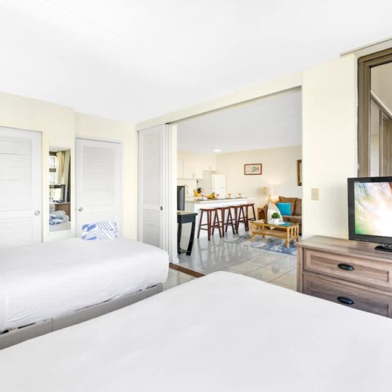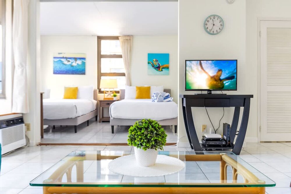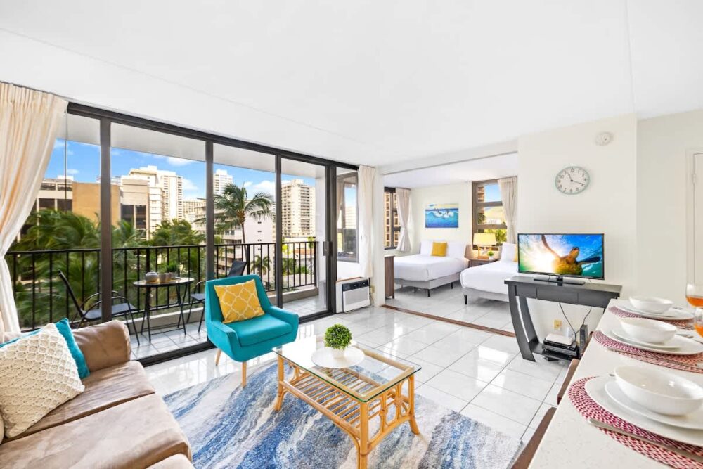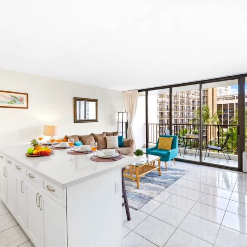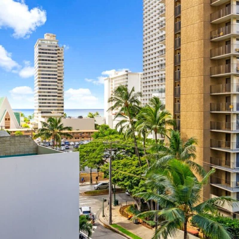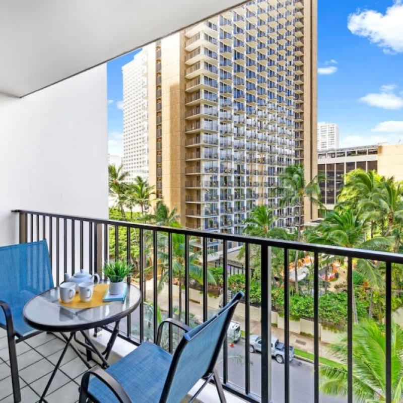 Beautifully renovated 1-bedroom suite within the Condominium Hotel Waikiki Banyan. Sleeps 4 guests and is conveniently situated within walking distance of Waikiki Beach, shopping venues, and restaurants. Plus, you’ll have access to complimentary parking and high-speed wireless internet, all while savoring partial ocean views!