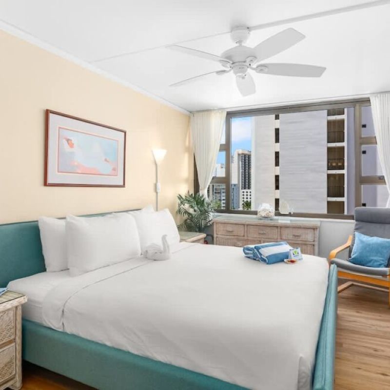 Discover this beautiful one-bedroom condo on the 12th floor of Waikiki Banyan, brought to you by Midway Vacations! With space for up to 4 guests, enjoy stunning ocean and city views. Just a short walk from Waikiki Beach and surrounded by shops and restaurants. Plus, enjoy free parking and high-speed wireless internet for a stress-free stay!